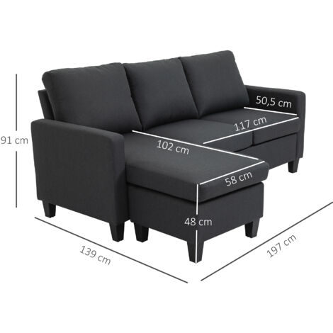 Hey Leute! Dieses HOMCOM Ecksofa ist der absolute Game-Changer für jedes Zuhause. Mit seinen Maßen von 197 x 139 x 91 cm findet es auch in kleineren Wohnzimmern Platz und bietet trotzdem genug Sitzfläche für die ganze Familie oder Besuch. Der Clou: Die Chaiselongue kann man einfach links oder rechts anbauen - super praktisch für verschiedene Raumaufteilungen! Der atmungsaktive Leinenstoff in Dunkelgrau ist nicht nur mega gemütlich, sondern sieht auch noch richtig stylisch aus. Die Sitzflächen sind weich gepolstert mit hochdichtem Schaumstoff, sodass man auch nach stundenlangem Fernsehen oder Zocken noch bequem sitzt. Die Kunststoffbeine geben dem Sofa einen stabilen Stand und die maximale Belastbarkeit von 136 kg pro Sitzfläche ist mehr als ausreichend. Ob fürs Wohnzimmer, Home-Office oder Studentenwohnheim - dieses Sofa macht einfach überall eine gute Figur! Montage ist zwar nötig, aber mit der beiliegenden Anleitung echt easy zu schaffen. Einfach mal ausprobieren - damit wird euer Zuhause zur echten Wohlfühloase!