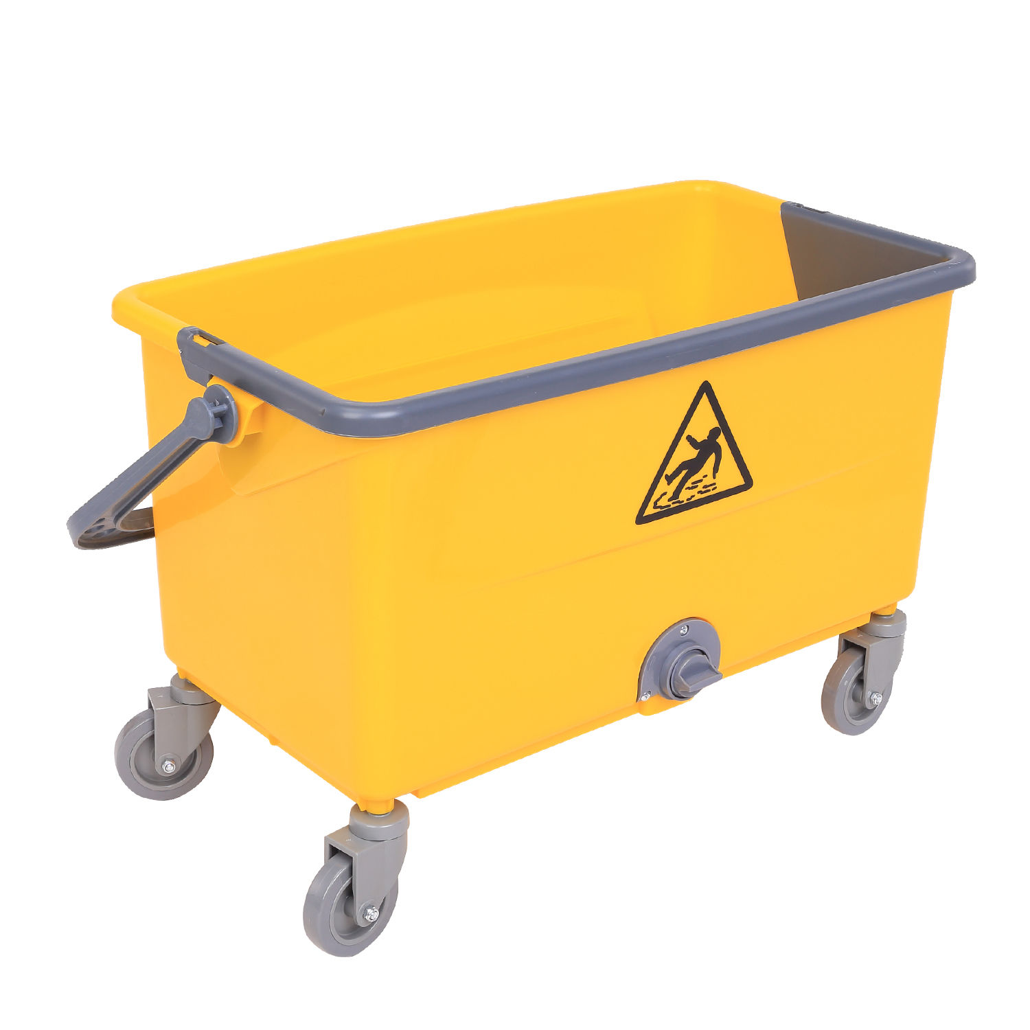 Super praktisch - dieser Reinigungswagen von HOMCOM erleichtert jede Putzaktion! Mit 26L Eimer, integrierter Wringpresse und mehreren Ablagekörben. Maße: 73x45x95 cm in gelb. Die Wringpresse drückt den Mopp effizient aus - keine nassen Hände mehr! Wassertrennwand trennt sauberes und schmutziges Wasser. 4 Rollen für leichte Beweglichkeit, Metallkonstruktion für Stabilität. Viel Stauraum für Reinigungsmittel und Zubehör. Einfache Montage mit bebilderter Anleitung. Perfekt für Haushalt, Büro oder gewerbliche Reinigung. So wird Putzen zum Kinderspiel - alles griffbereit und mobil!