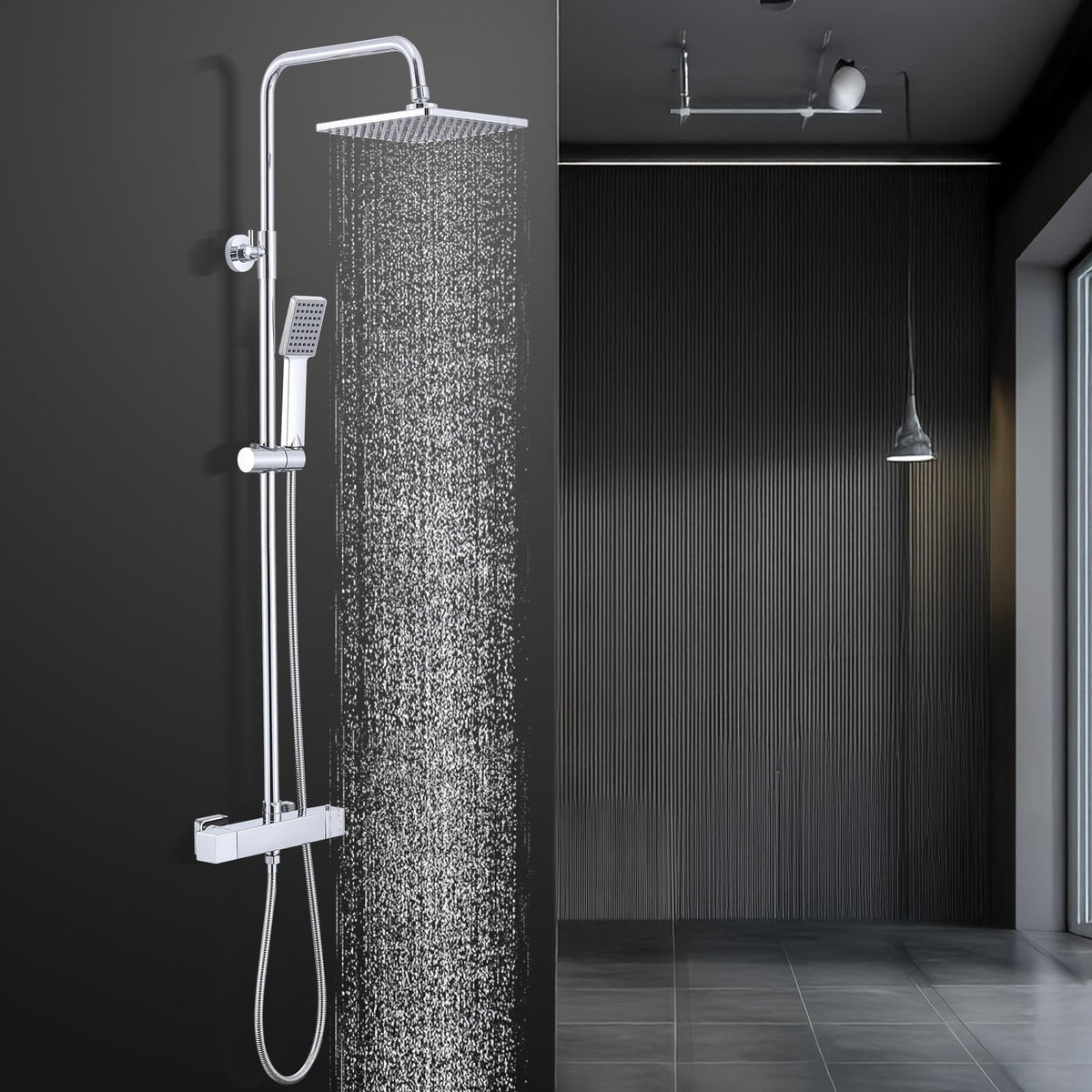 HOMELODY Thermostat Duschsystem Chrom - Komplettset Mit Regendusche & Handbrause