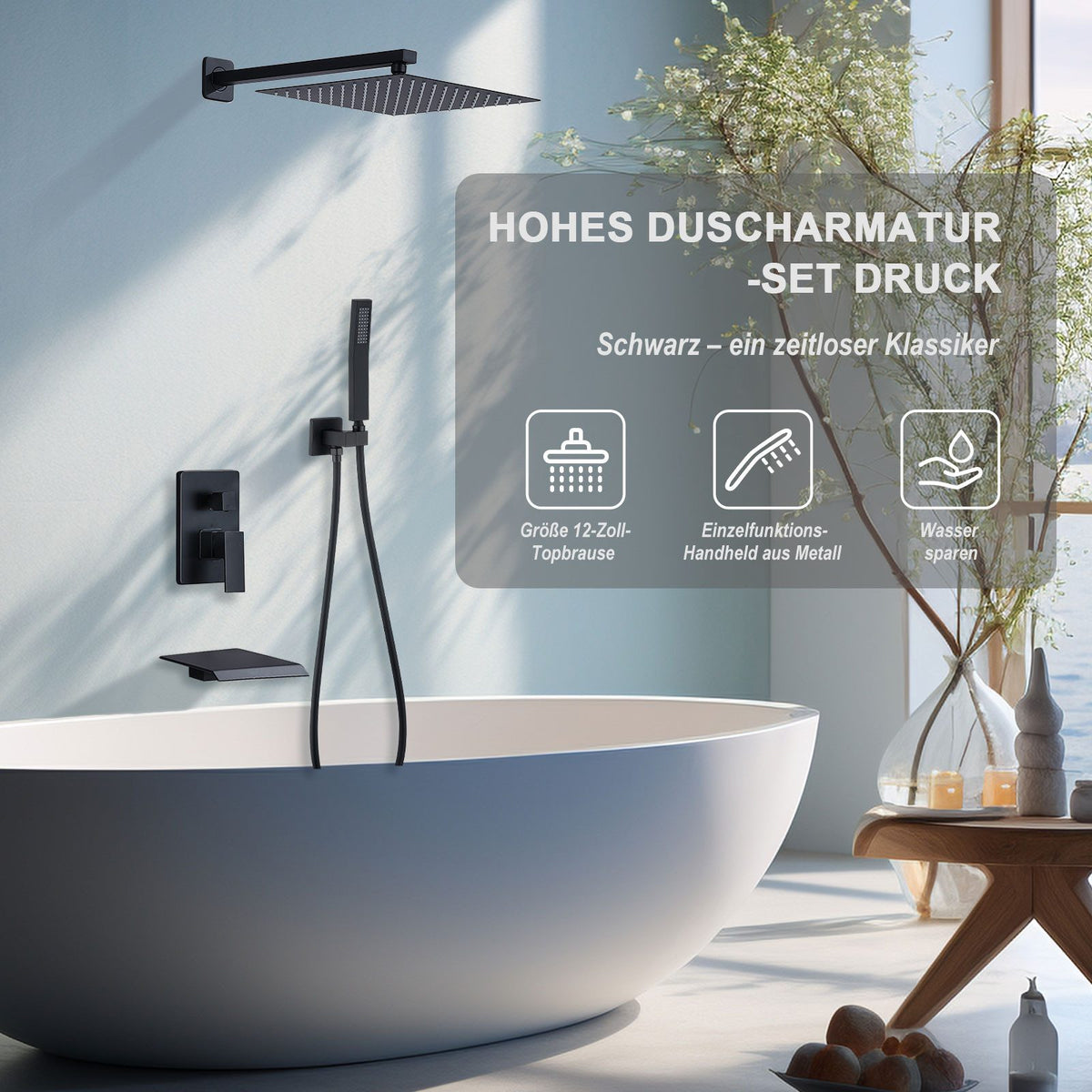 Wellness für dein Badezimmer! Dieses komplette Duschsystem von HOMELODY bringt Hotel-Feeling nach Hause. Mit praktischem Thermostat, das die Wassertemperatur konstant auf 38°C hält - absolut sicher für Kinder und Senioren, da Verbrühungen ausgeschlossen sind.