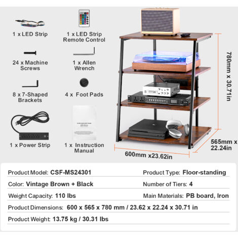 Boah, dieser HOOBRO Medienständer ist genau das, was deine Technik braucht! 4 Ablagen, 80cm hoch - da passt alles drauf: Plattenspieler, Verstärker, Lautsprecher, Konsolen, was auch immer. Jede Ebene hält bis zu 20kg - also keine Sorge mit schweren Geräten. Das Vintage-Design in Braun/Schwarz sieht einfach mega aus und passt in jedes Wohnzimmer. Mit 3 Kabelführungsöffnungen hinten - endlich kein Kabelsalat mehr! Aus stabilem Metall und Spanplatte - wackelt nicht. Einfach aufbauen mit der bebilderten Anleitung. Ob für deine HiFi-Anlage, als Pflanzenregal oder für Deko - damit machst du nichts falsch! Sieht aus wie vom teuren Möbelhaus, kostet aber nur einen Bruchteil.