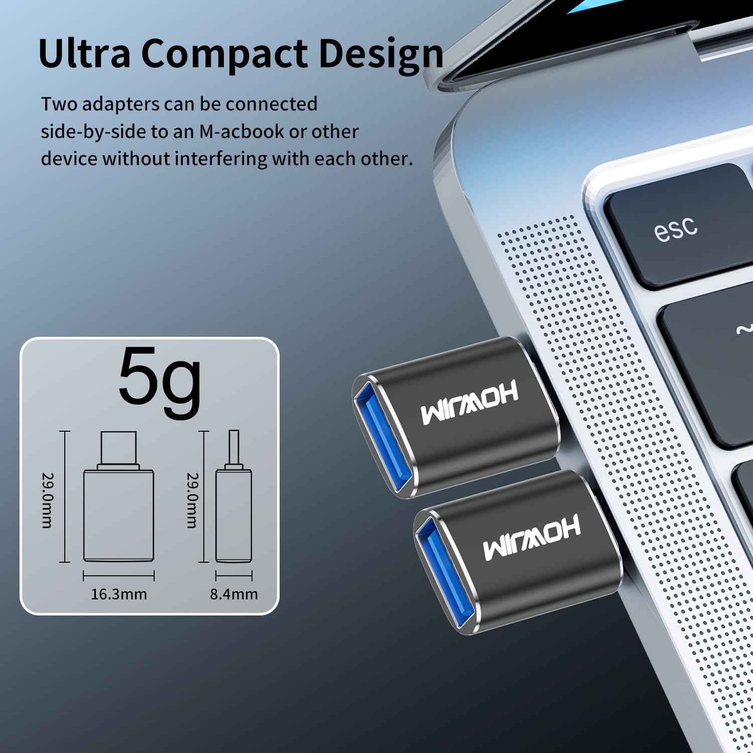 Modernste Technik meets alte Geräte! Diese HOWJIM USB-C Adapter machen's möglich. 2 Stück im Pack, jeder unterstützt 100W Schnellladung und 10Gbps Datenübertragung - das ist 20x schneller als USB 2.0! Aus Aluminiumlegierung, leicht und langlebig. Mit 5.1K Widerstand gegen Überhitzung. Perfekt für MacBooks, iPhones, iPads und mehr. OTG-fähig für Festplatten, Mäuse, Tastaturen. So kompakt dass zwei nebeneinander passen. Einfach einstecken und sofort nutzen - keine Treiber nötig. Macht eure alten USB-A Geräte fit für die Zukunft!