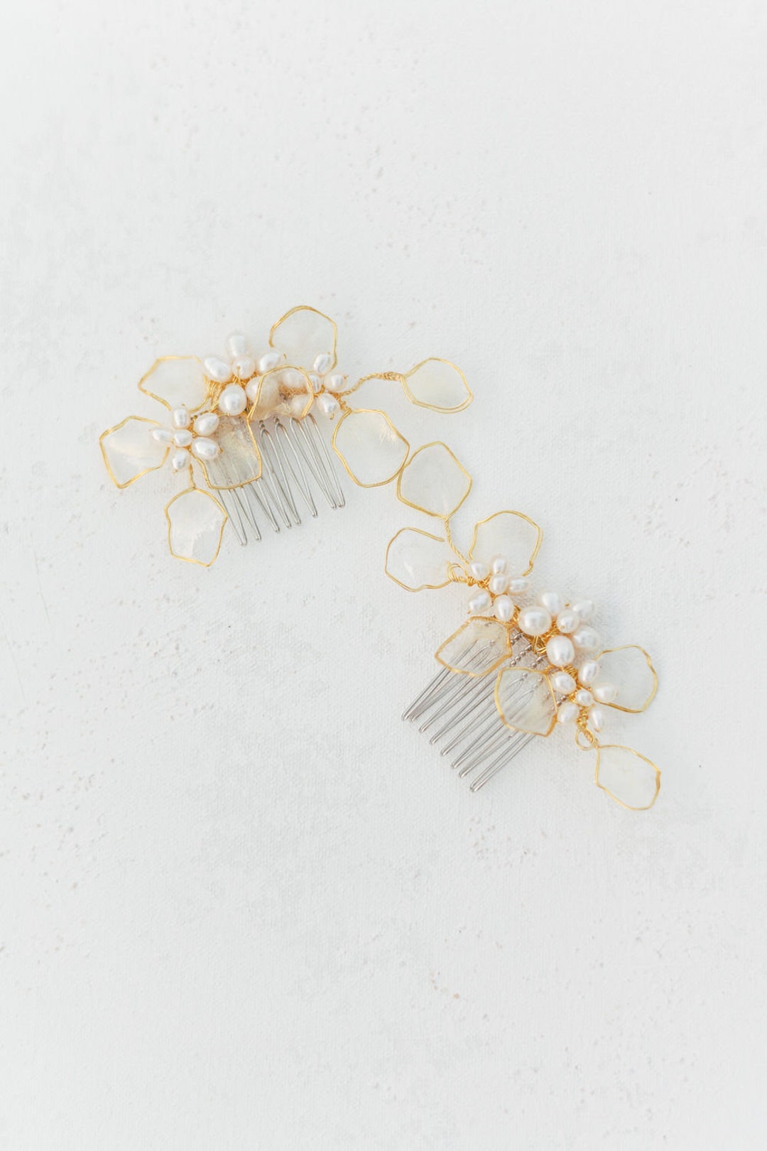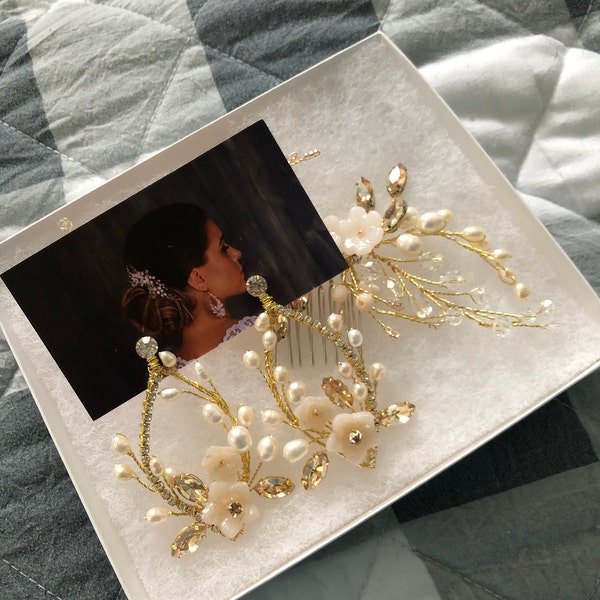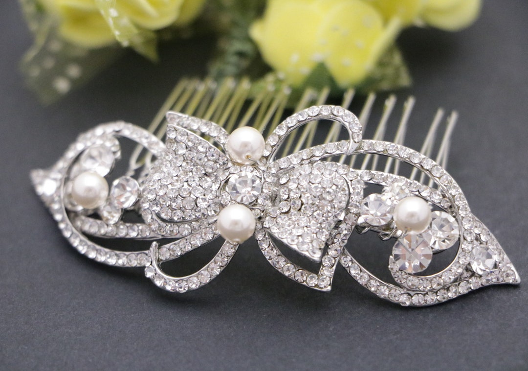 • Allereya Braut Haarkamm Gold - Strass Perlen Haarspange Für Hochzeit