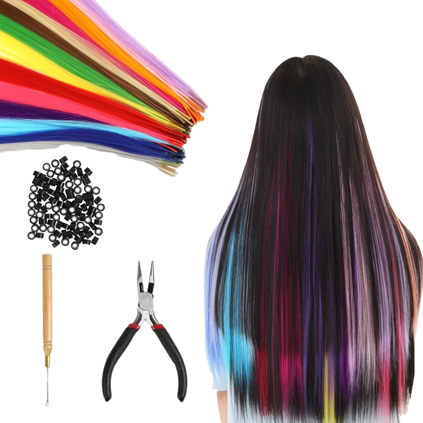 Dieses riesige Set mit 50 bunten Haarsträhnen bringt Farbe in deine Frisur! Enthalten sind nicht nur die Strähnen, sondern auch 1 Schere, 1 Häkelnadel und 50 Perlen für kreative Styles. Einfach einklipsen oder einflechten - keine Vorkenntnisse nötig. Perfekt für Cosplay, Partys, Festivals oder tägliches Styling. Das hochwertige Kunsthaar ist weich, leicht zu verarbeiten und die Farben bleiben intensiv. Ob für Kinder oder Erwachsene - mit diesem Set kannst du deinen Look komplett verändern. Mach aus einfachen Frisuren etwas Besonderes! Alles in einer Box - sofort loslegen und stylen!