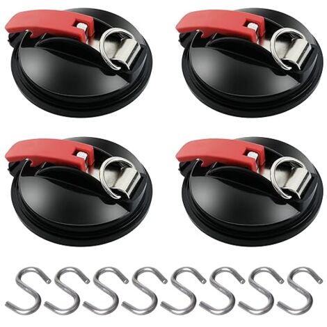 Diese Saugnapf-Haken sind echte Alleskönner! Im 4er-Set mit S-Haken für vielfältige Befestigungen. Halten bis zu 10kg auf glatten, nicht-porösen Oberflächen. Einfach aufdrücken, Griff drehen - schon sitzt er bombenfest! Aus robustem PP+TPU Material - verschleißfest und langlebig. Perfekt für Auto, Wohnwagen, Zelt, Markisen oder im Haushalt. Kratzt keine Oberflächen und ist leicht zu reinigen. Einfach abspülen, trocknen lassen und wiederverwenden. Der ideale Begleiter für Camping, Reisen oder zu Hause - immer wenn man schnell etwas sicher befestigen möchte!