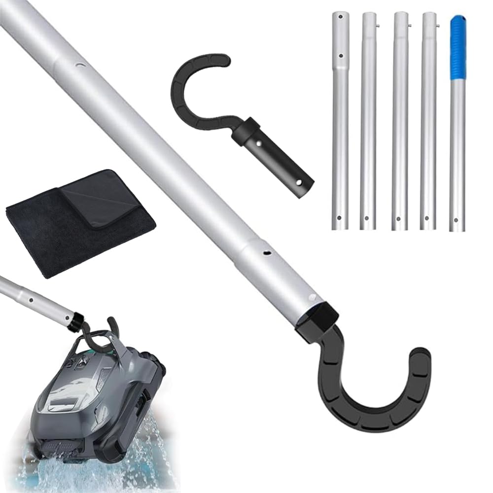 Hol deinen Poolroboter mühelos aus dem Wasser! Mit diesem praktischen Haken und der Teleskopstange musst du nicht mehr nass werden. Die Stange lässt sich bis zu 257 cm ausziehen - perfekt für jeden Pool. Aus robustem ABS-Material, das druckbeständig und langlebig ist. Passt zu den meisten Poolreinigungsrobotern. Einfach zusammenstecken, einhaken und herausheben. Macht die Poolpflege so viel einfacher! Kleiner Helfer, großer Nutzen.