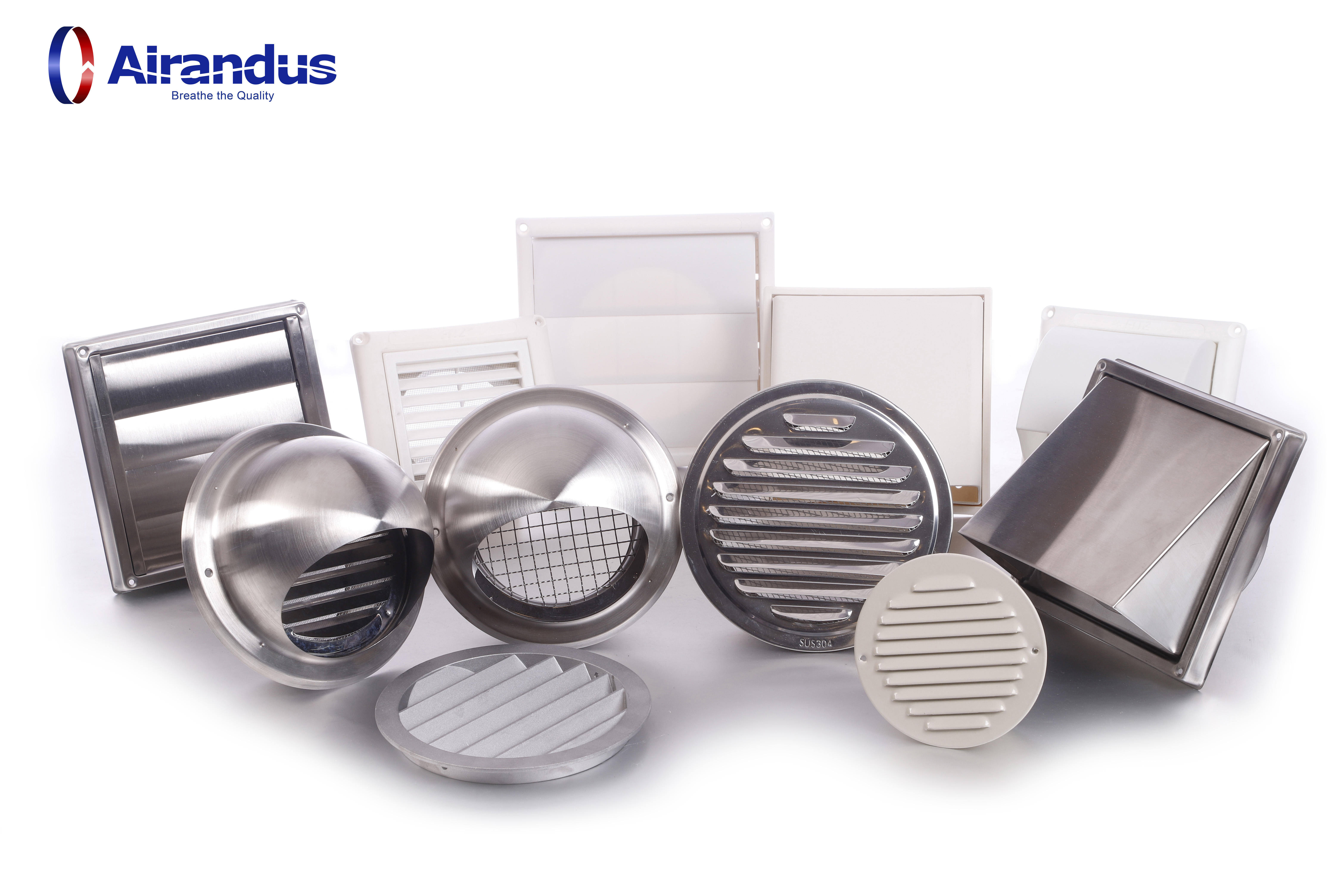 Das halbkugelförmige Design mit 45° geneigten Lamellen ist genial - hält Regen draußen und verhindert Rückfluss. Unten ist noch ein feines Netz das Schmutz abhält.