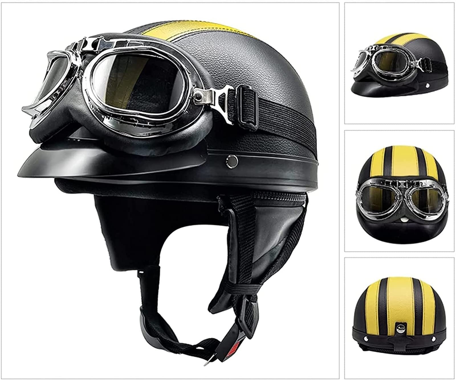 Stylish unterwegs auf zwei Rädern! Dieser Retro-Halbhelm kombiniert vintage Look mit moderner Sicherheitstechnik. DOT und ECE zugelassen, bist du legal auf allen Straßen in Europa und den USA unterwegs. Die integrierte Sonnenbrille schützt deine Augen vor Blendung und UV-Strahlung - einfach ausziehen bei Bedarf. Der ABS-Materialhelmkörper ist robust, während die hochdichte EPS-Dämpfungsschicht für optimalen Schutz sorgt. Das herausnehmbare und waschbare Innenfutter hält den Helm frisch und hygienisch. Der verstellbare Schnellverschluss macht das An- und Ausziehen auch mit Handschuhen super einfach. Mit nur 800g Gewicht ist der Helm angenehm leicht. Erhältlich in verschiedenen Größen von 57-64 cm Kopfumfang. Perfekt für Motorrad, Roller, Moped oder Quad - für Männer und Frauen, die Wert auf Style und Sicherheit legen.