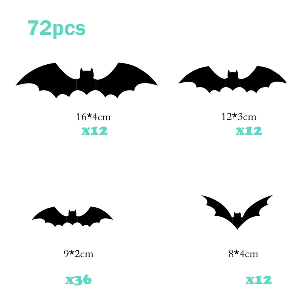 Erschaffe die ultimative Grusel-Atmosphäre mit diesem mega Fledermaus-Set! Enthalten sind 72 Fledermäuse in 4 verschiedenen Größen und in drei gruseligen Farben: Orange, Lila und Schwarz. Das Besondere: Jede Fledermaus hat faltbare Flügel, die du in verschiedene Positionen bringen kannst - so entsteht der Eindruck eines lebendigen Schwarms im Flug! Hergestellt aus hochwertigem, wasserdichtem PVC-Material das abnehmbar und wiederverwendbar ist. Einfach das mitgeliebte doppelseitige Klebeband auf die Rückseite machen und auf glatte, saubere Oberflächen kleben. Ob an Wänden, Fenstern, Decken oder Türen - deiner Kreativität sind keine Grenzen gesetzt. Perfekt kombiniert mit anderen Halloween-Dekorationen wie Spinnweben, Kürbissen oder Gespenstern. Mach deine Halloween-Party zur gruseligsten des Jahres und lass deine Gäste staunen! Einfach aufkleben und die Gruselstimmung genießen!