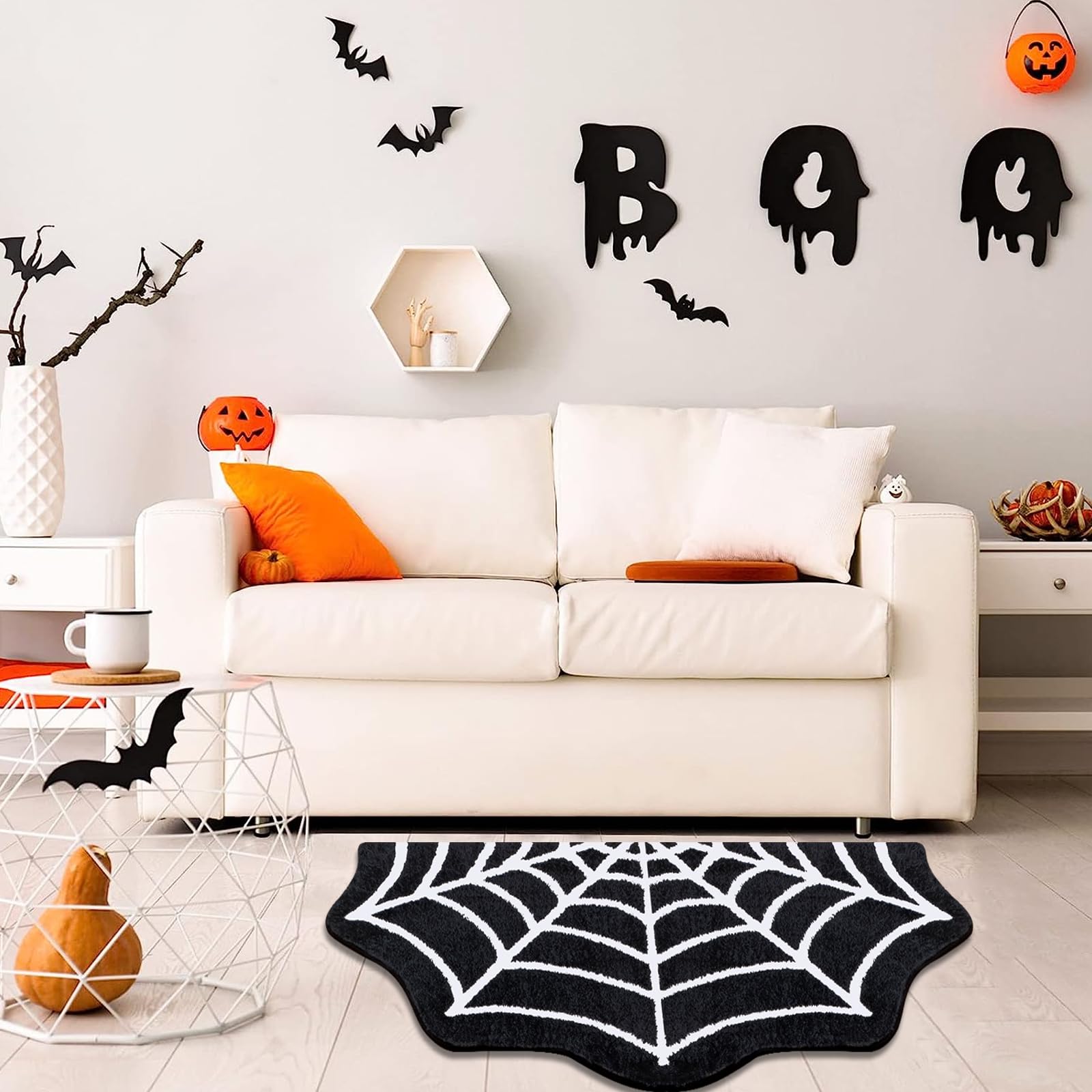 • Spinnennetz Teppich 80x150cm - Halloween Deko Mit Rutschfester Unterseite