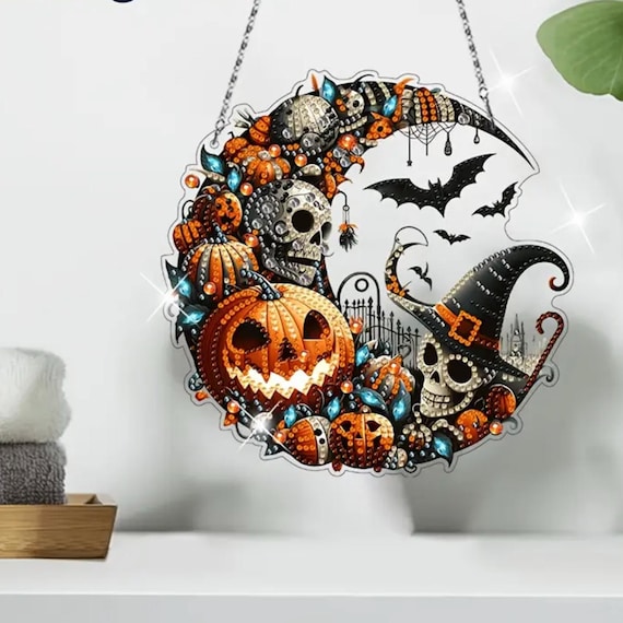 Boo! Dieses Diamond Painting Set bringt gruseligen Spaß ins Haus. Mit Motiven wie Mond, Schädel, Kürbis und Fledermäusen - perfekt für Halloween! Alles dabei: Diamantsteine, Leinwand, Stift und Kette. Einfach die Steinchen auf die entsprechenden Felder kleben - und schon entsteht ein funkelndes Kunstwerk. Die 5D-Effekte durch die Reflektion sind der Hammer! Fördert Geduld und Konzentration, und am Ende hast du eine tolle Deko für Tür, Fenster oder Wand. Super zum Abschalten und Entspannen. Für Erwachsene und größere Kinder - ein kreativer Zeitvertreib mit echtem Wow-Effekt!