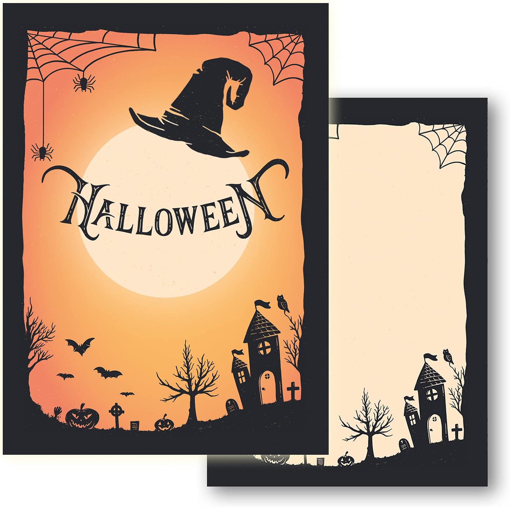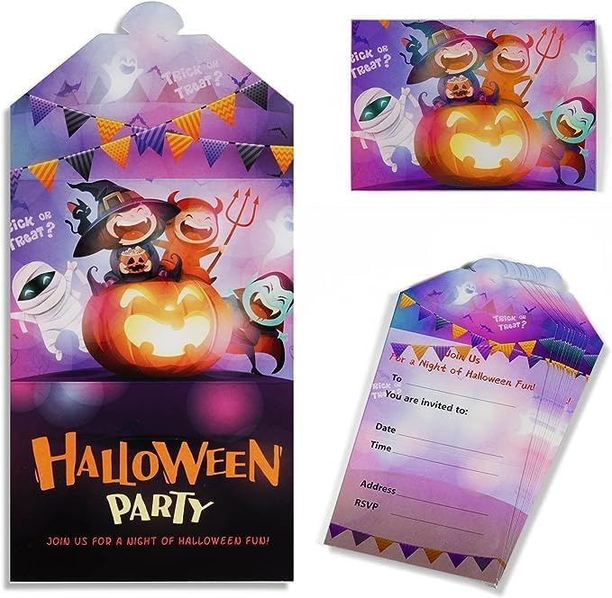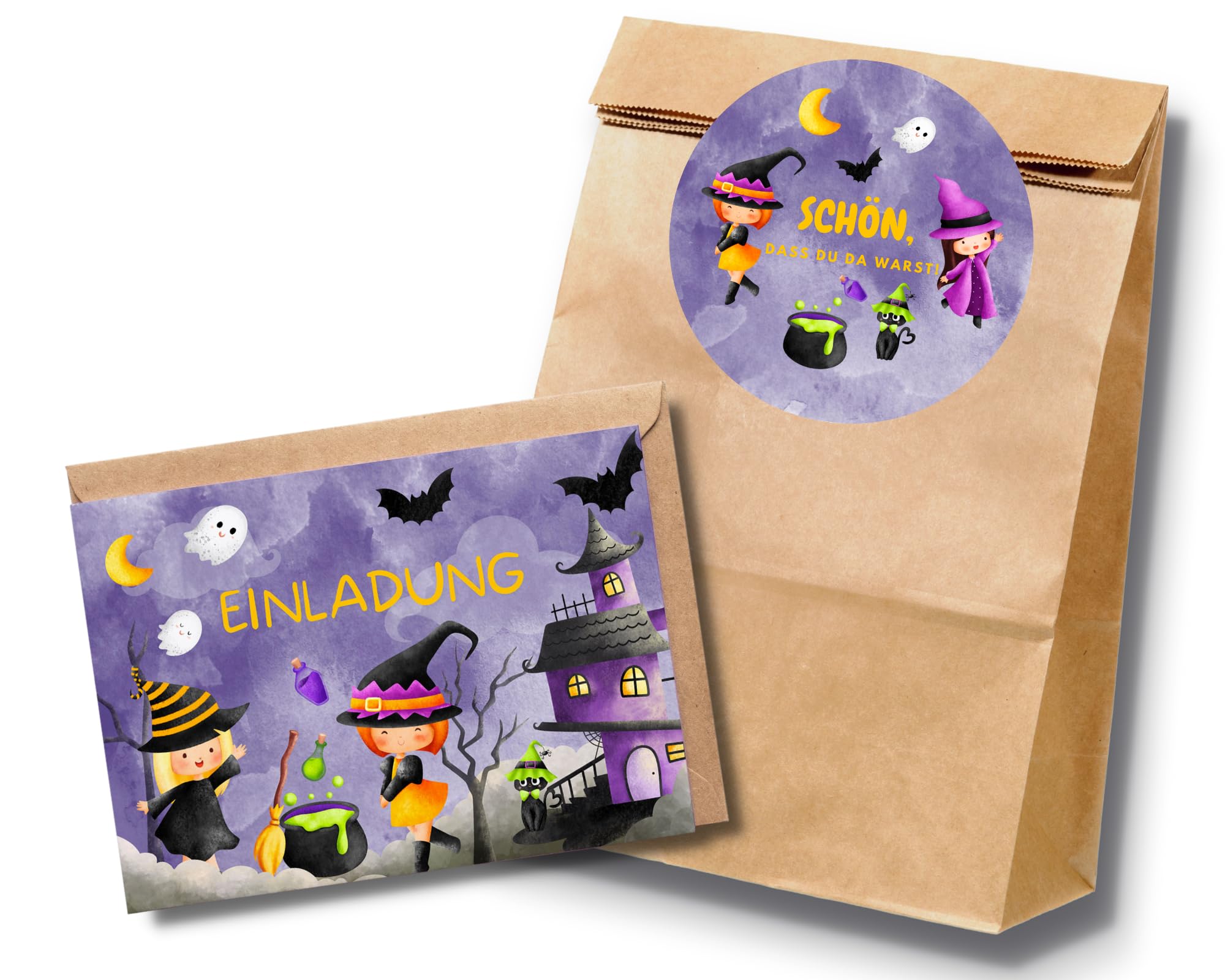 Diese süßen Halloween-Einladungskarten sind perfekt für die nächste Kinder-Party! Das Set enthält 10 Karten mit dem niedlichen Motiv einer Hexenkatze - genau das Richtige für Jungen und Mädchen. Im A6 Postkartenformat, beidseitig bedruckt, mit genug Platz auf der Rückseite für persönliche Infos zur Party. Hergestellt in Deutschland auf hochwertigem, festem Karton - die sehen nicht nur gut aus, sondern sind auch stabil! Einfach die Party-Details eintragen und verteilen - schon ist die Vorfreude auf die Halloween-Feier perfekt! Die Karten wirken richtig edel und machen jede Einladung zu etwas Besonderem. Ob für die Grusel-Party zu Hause, im Kindergarten oder in der Schule - mit diesen Karten liegst du genau richtig! Made in Germany - da weiß man, was man hat!