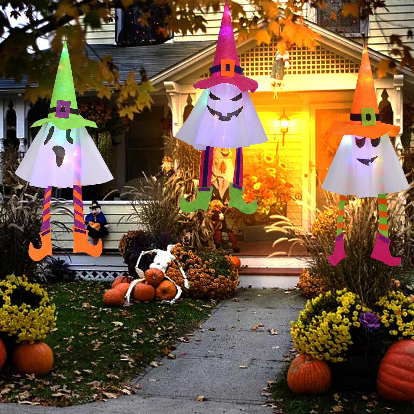 Boo! 🎃 Suchst du die perfekte Gruseldekoration für Halloween? Dieser hängende LED-Geist wird deinen Vorgarten in eine schaurige Geisterzone verwandeln! Mit seinem fiesen Skelettgesicht und dem flatternden Umhang sorgt er für Gänsehaut pur - ob an Bäumen, Fenstern oder Türen. Die Arme sind beweglich, sodass du ihm verschiedene gruselige Posen verpassen kannst. Das LED-Licht macht ihn auch nachts perfekt sichtbar - einfach unheimlich! Aus hochwertigem, wetterfestem Material gebaut, hält er Regen und Kälte stand. Mit dem praktischen Hängeseil ist die Montage ein Kinderspiel - keine Werkzeuge nötig. Perfekt kombinierbar mit Spinnennetzen, Kürbissen und anderen Halloween-Artikeln. Ob für die Gartenparty oder zur Dekoration des Hauseingangs - dieser Geist ist der absolute Hingucker! Deine Nachbarn werden neidisch sein und die Kinder vor Begeisterung schreien (vor Angst oder Freude - wer weiß das schon bei Halloween?). Mach dein Zuhause zur gruseligsten Adresse der Straße!