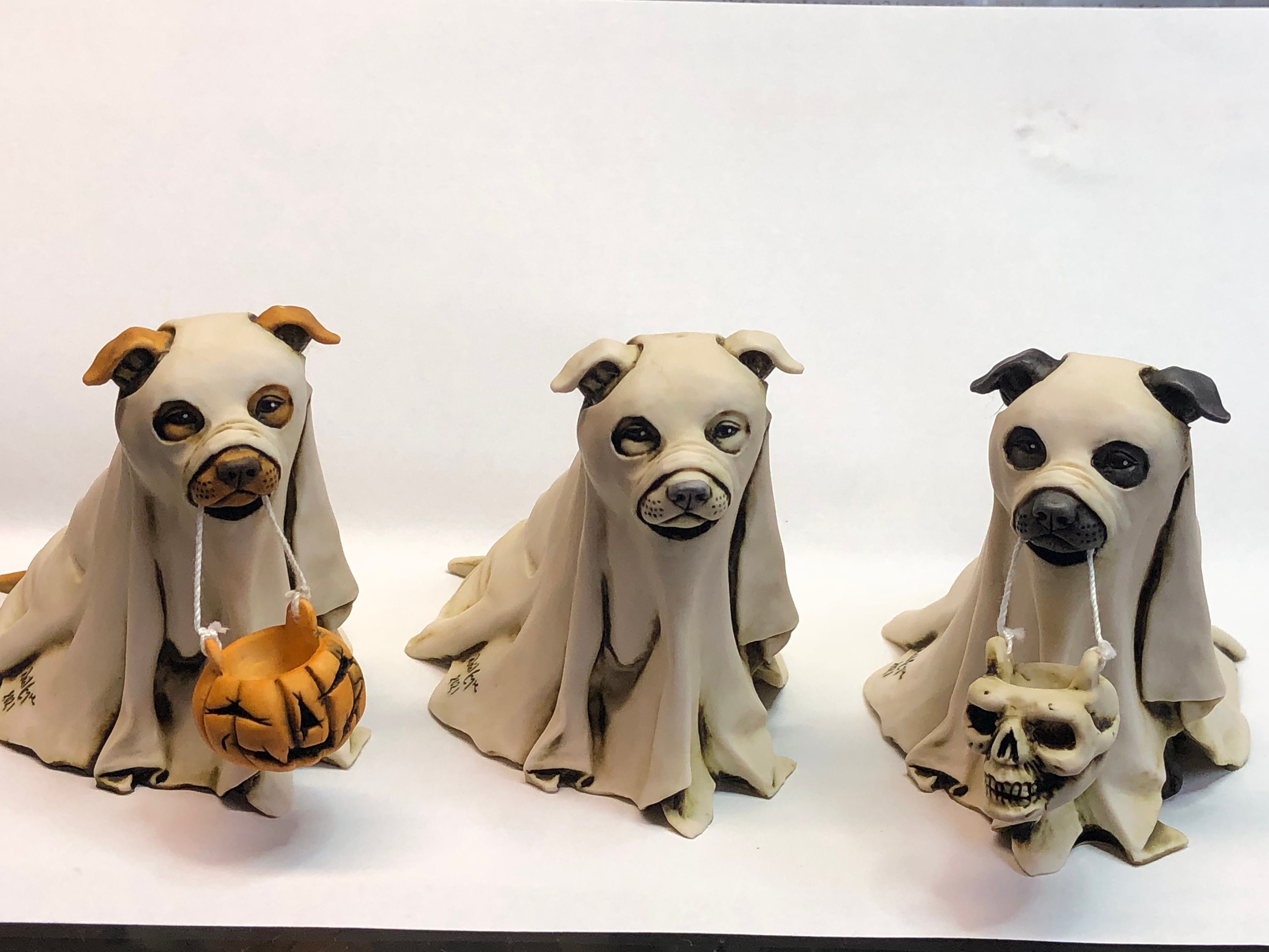 • Halloween Geist Mit Hund Statue - 20cm Tisch Deko Figur | Herbst Deko Für Innenbereich