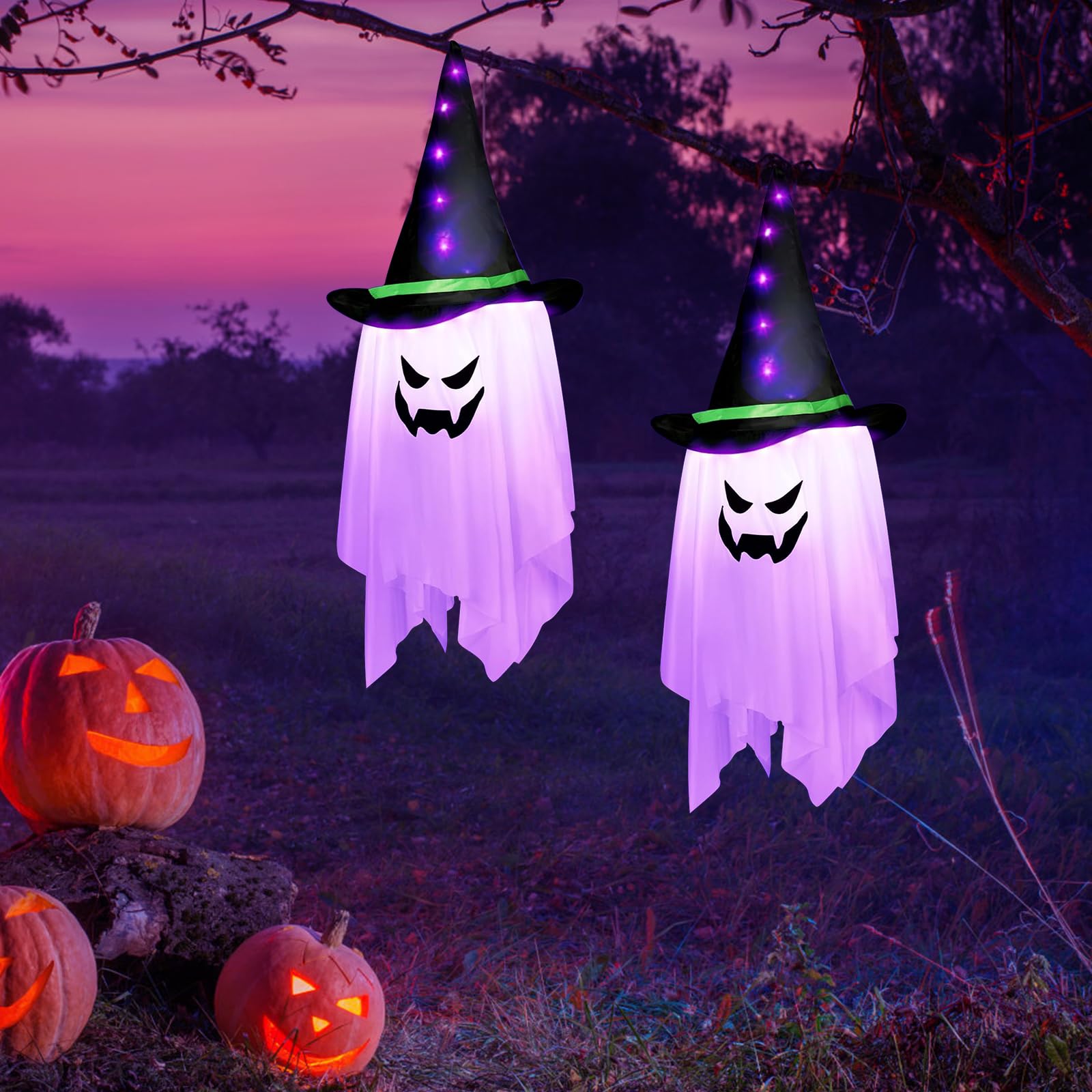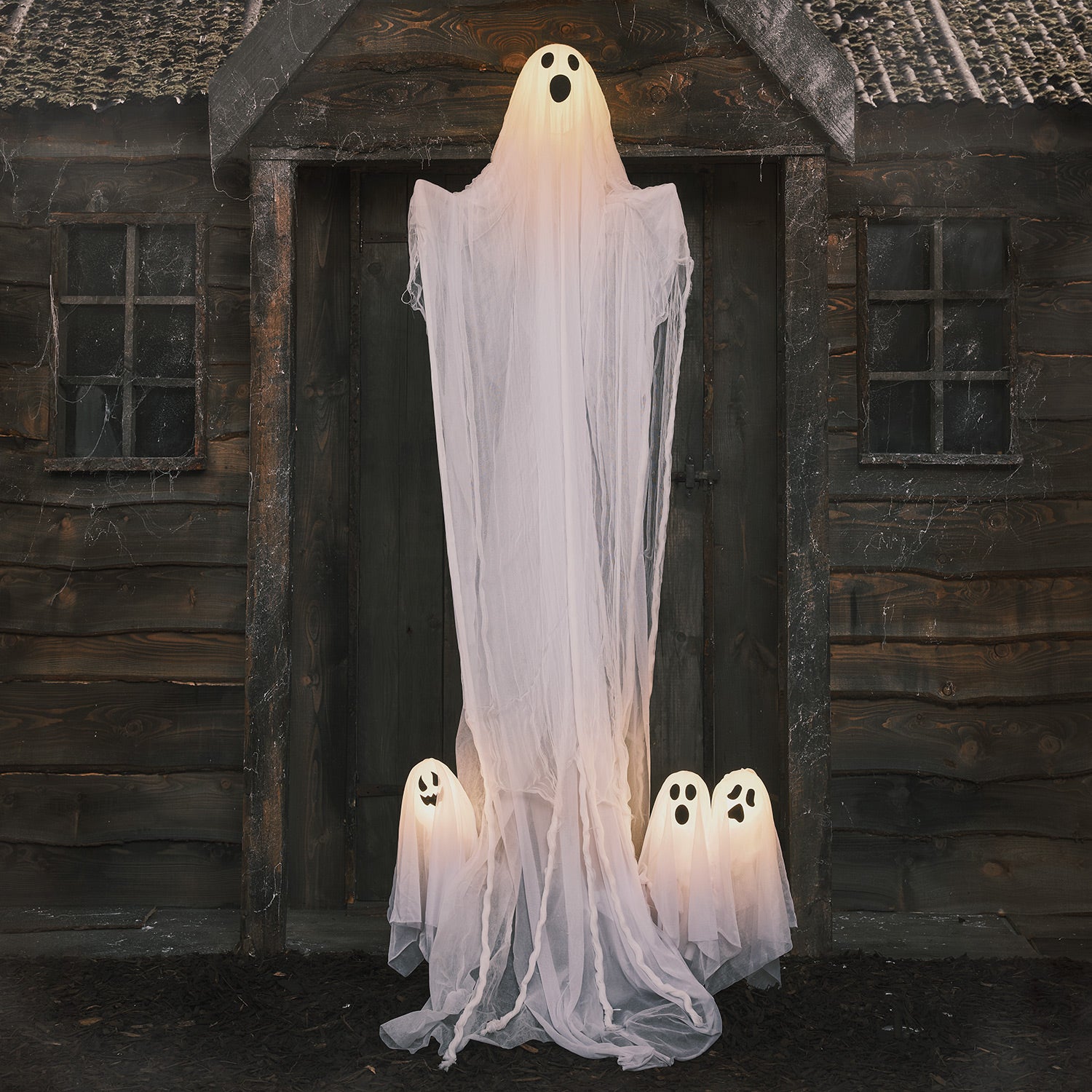Grusel-Spaß garantiert! Diese 2 Halloween-Geister mit Lichterketten machen deinen Garten zur Grusel-Zone. Jeder Geist ist 50cm hoch und 40cm breit - ein echter Hingucker! Die Arme sind biegsam - du kannst sie in jede Pose bringen. Schon montiert, einfach aufhängen und fertig! Aus wasserdichtem Polyester, die Lichterketten aus Metalldraht. Perfekt für Bäume, Vordächer, Balkone. Die Geister sind niedlich genug, dass sie Kinder nicht erschrecken. Mit Knopfbatterien betrieben (nicht enthalten). Einfach zusammenfalten und wiederverwenden. Mach deine Halloween-Party unvergesslich!