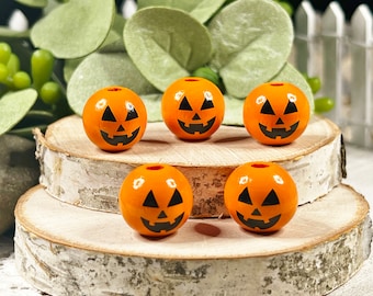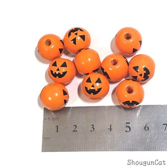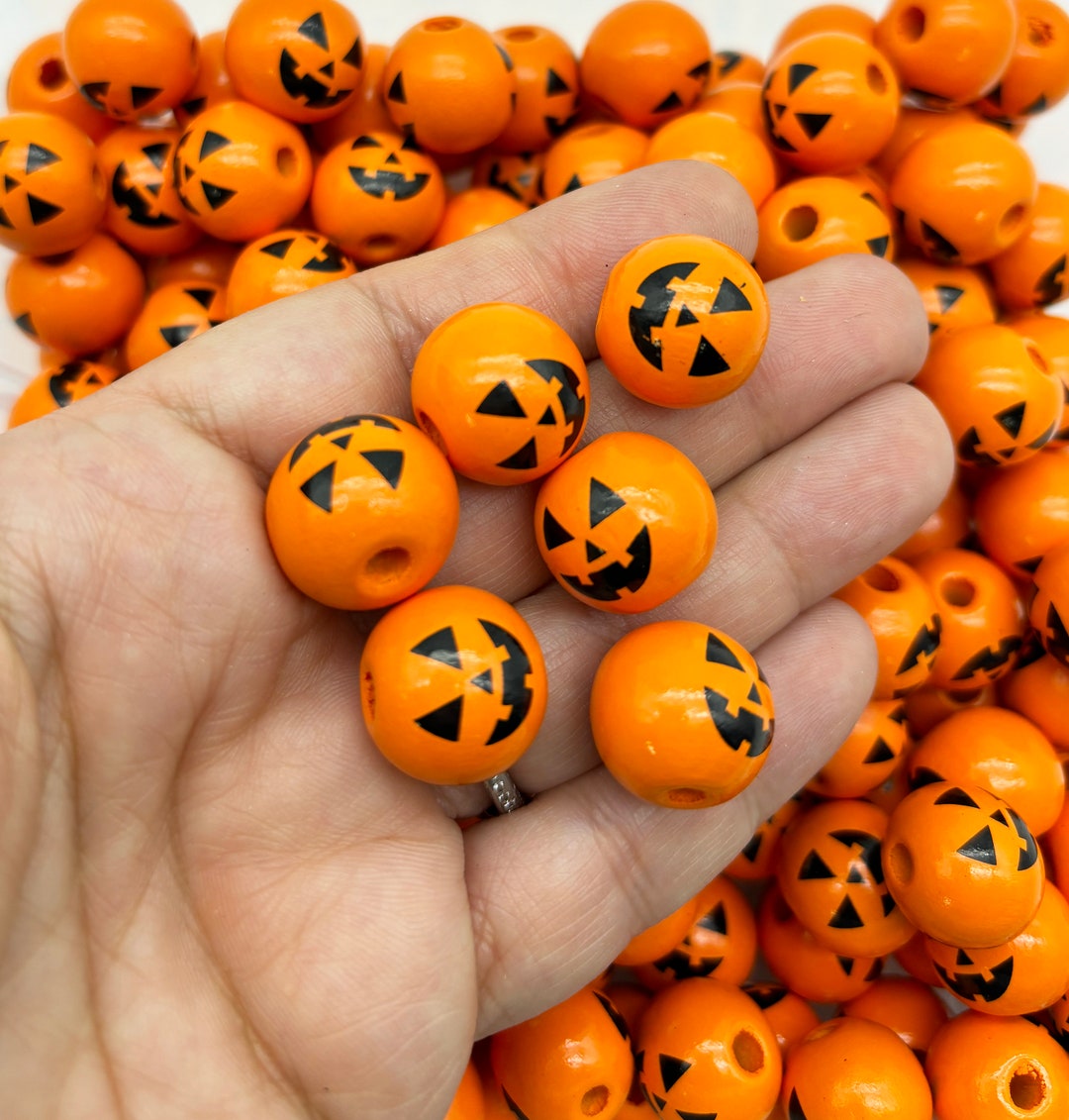125 Stück Halloween Holzperlen 16mm - Mit Gesichtern & Hanfseil Für DIY Schmuck
