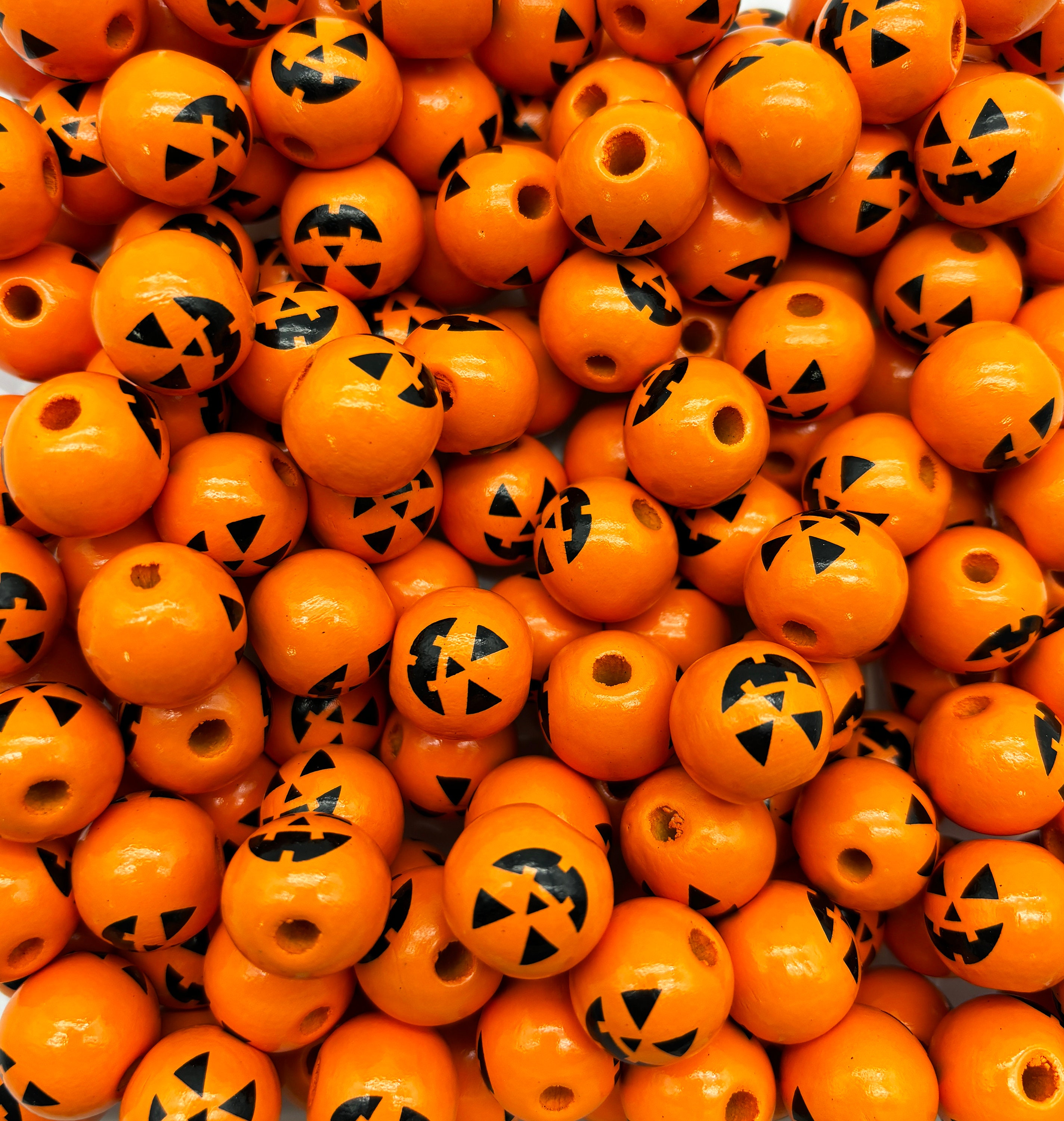 • 125 Stück Halloween Holzperlen 16mm - Mit Gesichtern & Hanfseil Für DIY Schmuck