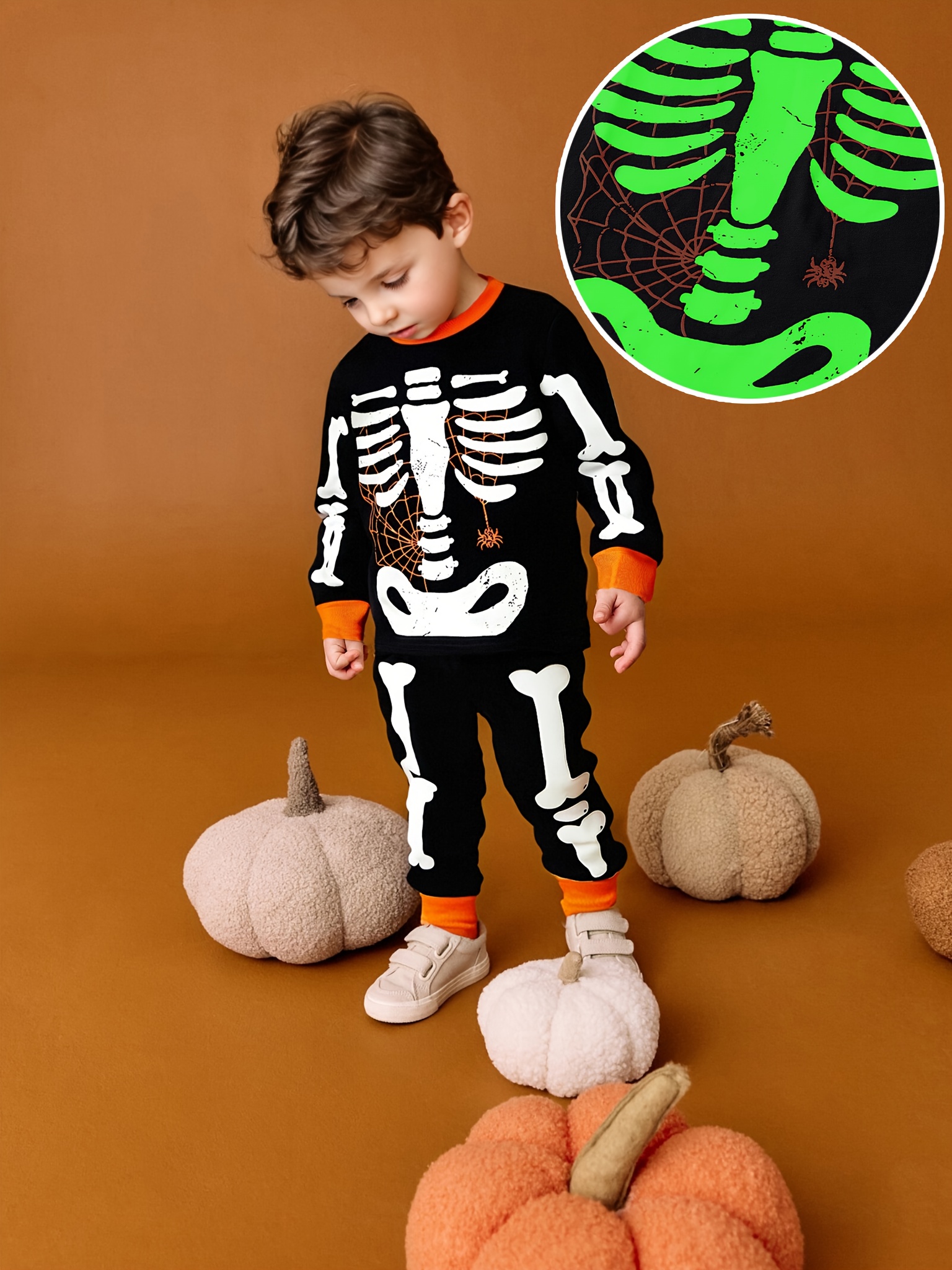 • Halloween Kinderkostüm Skelett Set - Langarm Top & Hose Mit Cartoon-Druck Für Jungen & Mädchen