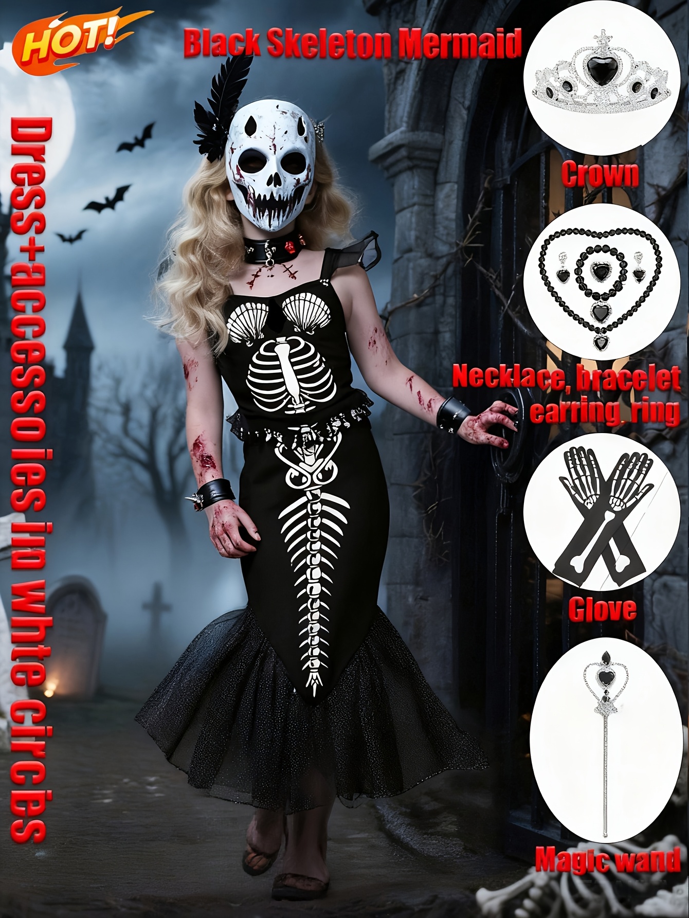 Halloween Kinderkostüm Skelett Set - Langarm Top & Hose Mit Cartoon-Druck Für Jungen & Mädchen