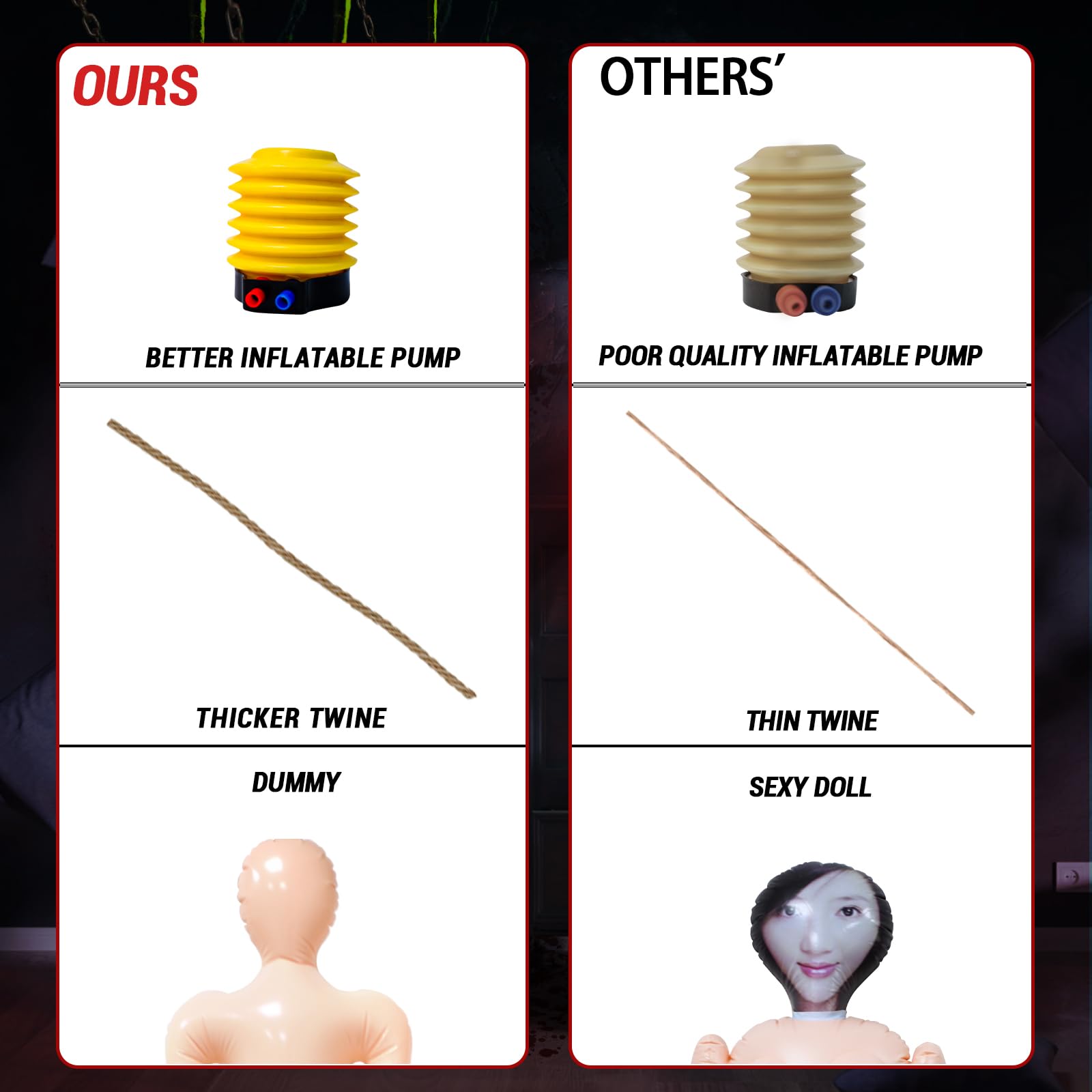 Alter, das ist ja mega gruselig! Stell dir vor: Eine komplett aufblasbare Leiche in nem schwarzen Leichensack - ca. 150cm groß, also wie ein echter Mensch! Dazu gibt's reflektierendes Silberband, Warnband und sogar ne Luftpumpe. Einfach die Puppe aufblasen, in den Sack stecken, mit dem Silberband umwickeln und irgendwo aufhängen - im Garten, an der Tür, wo auch immer du deine Gäste erschrecken willst! Das Material ist extra stabil, reißfest und hält auch mal ne ganze Halloween-Saison durch. Nach der Party einfach Luft rauslassen und platzsparend verstauen. Perfekt für Horror-Partys, Gruselhäuser oder einfach nur, um dein Haus in ne richtige Spukbude zu verwandeln. Deine Nachbarn werden dich hassen, aber deine Gäste werden's nie vergessen! Komplett-Set mit allem, was du brauchst - einfach nur geil für alle Halloween-Fans!