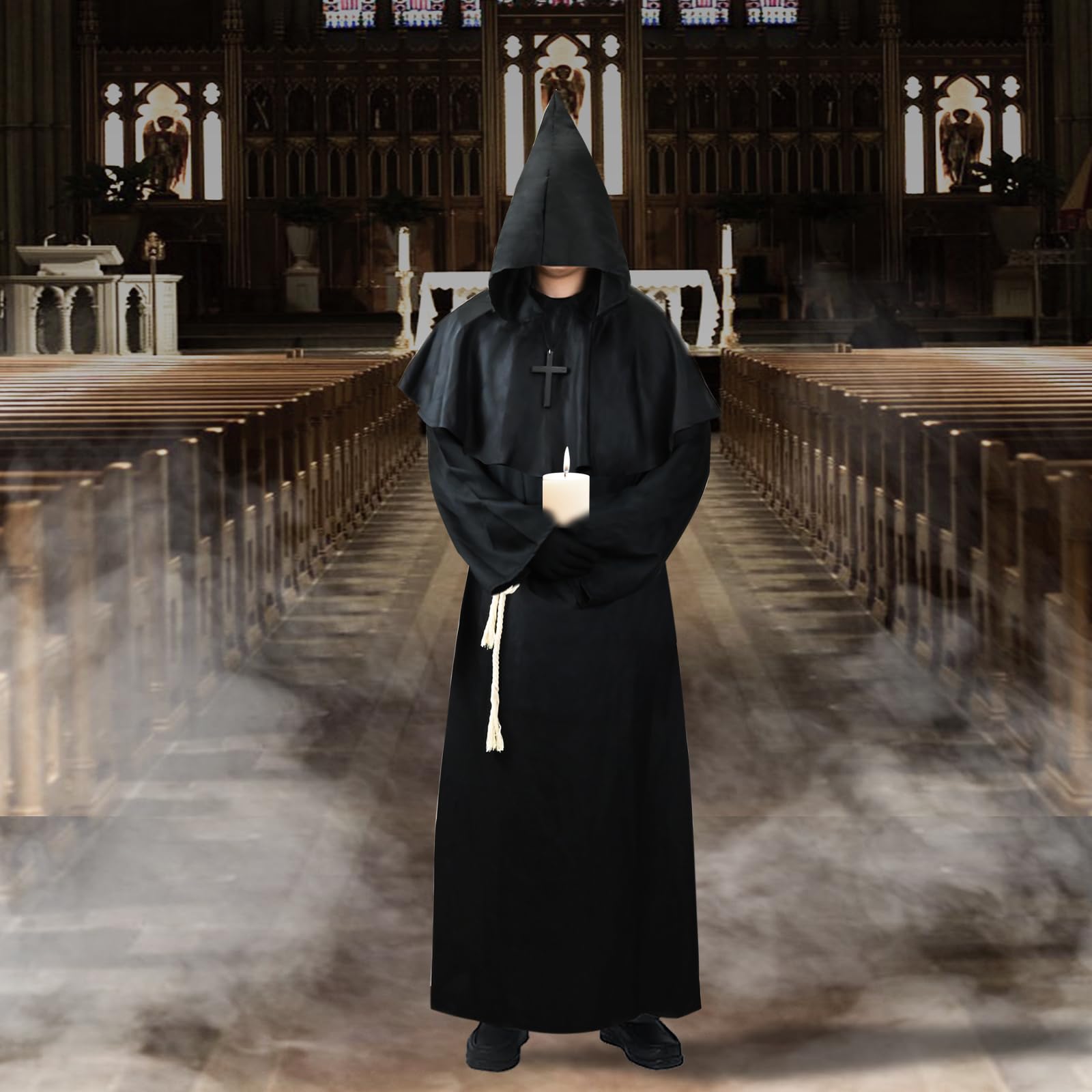 Für die gruseligste Halloween-Party ever! Dieses Mönch-Kostüm ist einfach perfekt. Aus hochwertigem Polyester, atmungsaktiv und super bequem. Mit der großen Kapuze und dem drapierten Schnitt siehst du aus wie ein echter mittelalterlicher Mönch - nur viel unheimlicher! Inklusive Kreuz-Halskette für den letzten Schliff. In Größen S-XXL erhältlich, also für fast jede Figur geeignet. Nicht nur für Halloween super, sondern auch für Escape Rooms, Gothic-Fotoshootings oder LARP-Events. Einfach überziehen und schon bist du der gruseligste Mönch der Party! Mach deine Freunde mit diesem authentischen Kostüm richtig neidisch!