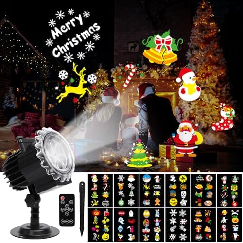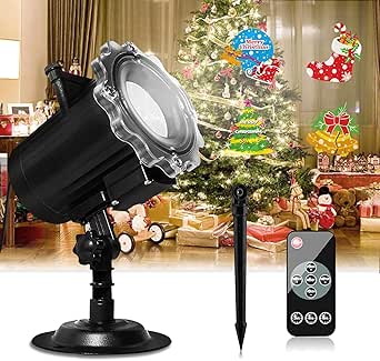 Boah, das ist ja der Hammer! Dieser LED-Projektor verwandelt deinen Garten oder Wohnraum im Handumdrehen in eine magische Festlandschaft! Mit 12 verschiedenen Mustern wie Halloween-Geistern, Kürbissen, Schneeflocken, Weihnachtsmännern und Herzen bist du für jedes Fest gerüstet. 🎄\n\nDas Besondere: Der Projektor ist wasserdicht mit IP44 für den Adapter und IP65 für die Lampe - hält also problemlos Regen, Sonne oder Schnee stand. Perfekt also für den ganzjährigen Outdoor-Einsatz!\n\nMit der praktischen Fernbedienung kannst du nicht nur die Muster wechseln, sondern auch Timer einstellen: 2, 4 oder 6 Stunden - danach schaltet sich der Projektor automatisch ab. So sparst du Energie und musst nicht dran denken.\n\nDie Projektionsentfernung beträgt bis zu 20 Meter - damit kannst du sogar große Hauswände in Kunstwerke verwandeln! Ob blinkend oder statisch, alles ist einstellbar. Ideal für Hochzeiten, Partys, Bars oder einfach um dein Zuhause in eine Festmeile zu verwandeln.\n\nEinfach den Erdspieß für draußen nutzen oder die flache Basis für innen - in wenigen Minuten ist die magische Beleuchtung einsatzbereit. Hol dir diesen vielseitigen Projektor und werde zum Meister der Festtagsbeleuchtung!