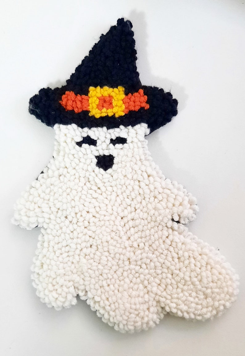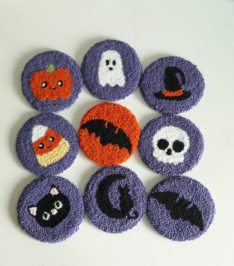 Cooles Halloween-Bastelset für alle Handarbeits-Fans! Dieses Punch Needle Set mit süßer schwarzer Katze, Fledermäusen und Geistern ist perfekt für Anfänger. Alles dabei für sofortigen Bastelspaß!