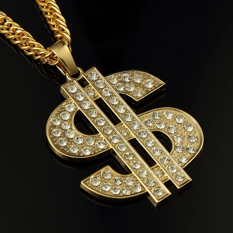 JKJF Dollar Zeichen Halskette & Ring Set - Hip Hop Style Im Gold-Look