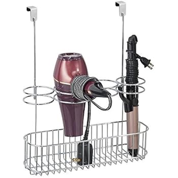 Schluss mit dem Chaos im Bad! Dieser stylische Halter von mDesign in Gold hält deinen Haarfön, Glätteisen, Lockenstab und Bürsten ordentlich verstaut - und das ganz ohne Bohren! Aus robustem, rostbeständigem Stahldraht gefertigt, mit geteiltem unteren Korb für optimale Organisation. Die offene Gitterkonstruktion lässt heiße Geräte schnell abkühlen und die kleinen Füße schützen deine Arbeitsfläche vor Hitze. Mit den Maßen 22,2x15,9x17,8 cm passt er perfekt auch auf kleine Waschtische. Einfach hinstellen oder im Schrank platzieren - so hast du alle Styling-Tools immer griffbereit und dein Bad bleibt aufgeräumt!