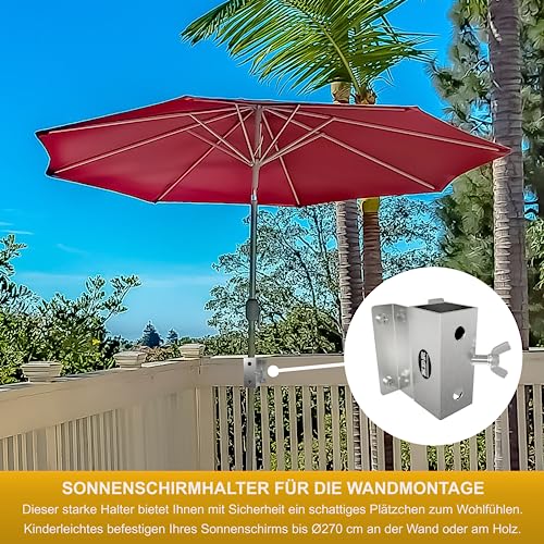 Dein Sonnenschirm steht bombenfest mit dieser Edelstahl-Halterung! Das komplette Set enthält 1 Schirmständerrohr, 3 Rohrhülsen (für 1-1/4\, 1-1/2\ und 1-9/10\ Durchmesser), 1 Stahlnagel, 3 Metallringe und 2 verstellbare Befestigungsknöpfe. Aus robustem Edelstahl, rost- und korrosionsbeständig - hält jedem Wetter stand. Einfache Montage: Ständer auf Zement, Marmor oder Granit schrauben, passende Hülse wählen, Schirmstange einsetzen und mit den Knöpfen fixieren. Kein Wackeln mehr bei Wind! Vielseitig einsetzbar für Sonnenschirme, Fahnenmasten oder Windspiele. Perfekt für Garten, Terrasse, Café oder Schwimmbad. Mit 8 cm Durchmesser unten, 30 cm Höhe und 6 cm Durchmesser oben bietet sie stabilen Halt. Silber-schwarzes Design unterstreicht deinen Outdoor-Bereich. Endlich schönes Wetter ohne umfallende Schirme genießen!