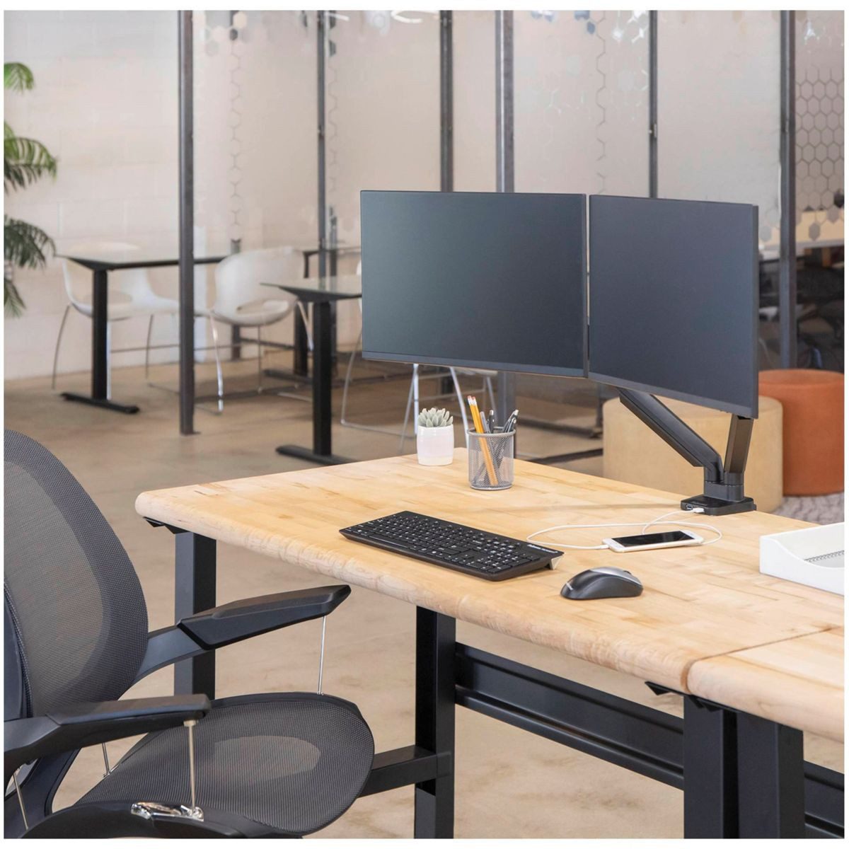 Endlich mehr Platz auf dem Schreibtisch! Mit dieser Fellowes Monitorhalterung für 2 Bildschirme (jeweils bis 32 Zoll oder 81 cm) kannst du deine Monitore genau da positionieren, wo du sie brauchst. Die Gasfeder macht das Verstellen super easy - hoch, runter, schwenken, neigen, alles kein Problem. Mit der Klemme oder Durchführung befestigst du sie ohne Bohren. Die USB-Ports sind praktisch für Maus, Tastatur & Co. Zertifiziert nach ergonomischen Standards, schonst du so Nacken und Augen. Perfekt fürs Homeoffice oder den Arbeitsplatz - einfach die Monitore dran, aufräumen und effizienter arbeiten! So macht Arbeiten Spaß!