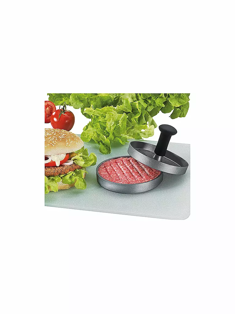 Hey Grillmeister! Diese Hamburgerpresse von Küchenprofi ist einfach genial für deine nächste BBQ-Party. Aus robustem Aluminiumguss gefertigt und super einfach zu bedienen - einfach Fleischmasse rein, zudrücken und schon hast du den perfekten Burger-Patty mit den typischen Grillrillen! Mit 12 cm Durchmesser kriegst du genau die richtige Größe für deine Brötchen. Die Beschichtung ist spitze, sodass der Patty leicht wieder rausgeht - Tipp: Einfach vorher leicht einölen oder Frischhaltefolie reinlegen. Spülmaschinenfest natürlich, also keine lästige Handwäsche. Egal ob für deine Gartenparty, den Familien-Grillabend oder wenn du mal richtig Burger-Lust hast - mit dieser Presse werden deine Patties immer gleichmäßig und sehen aus wie vom Profi! Kein Rumgekloppe mehr mit der Hand, keine ungleichmäßigen Burger. Einfach, praktisch und macht richtig Spaß! Für alle, die ihre Burger selbst machen wollen und Wert auf perfekte Form legen. Ein Must-Have für jede Grill-Saison!