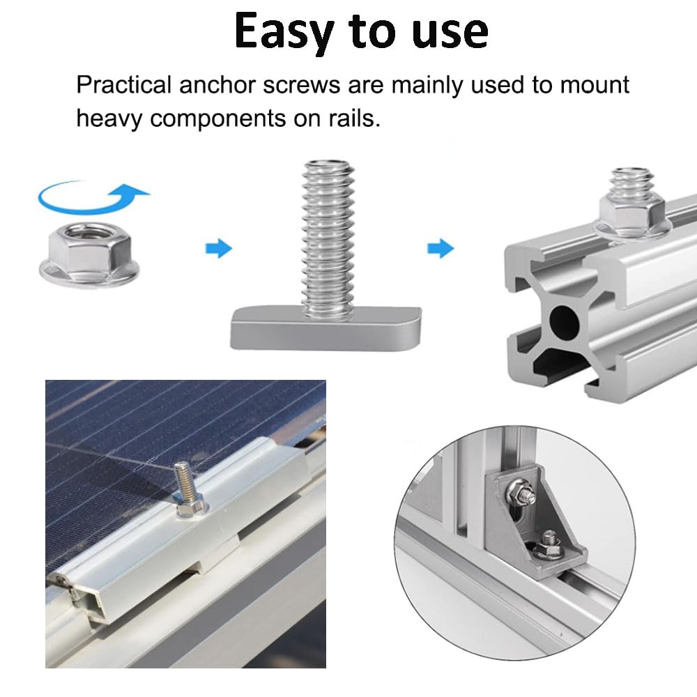 Professionelle Befestigungslösung für Solaranlagen und mehr! Dieses Set mit 12 Hammerkopfschrauben M8x20mm aus Edelstahl A2-70 inklusive Flanschmuttern ist perfekt für PV-Montage, Gewächshäuser und industrielle Anwendungen. Die robusten Schrauben korrodieren nicht und halten auch bei widrigen Wetterbedingungen. Das spezielle Hammerkopf-Design ermöglicht einfaches Gleiten in Aluminiumschienen und sicheres Festziehen. Perfekt für Solar-Montageschienen, Photovoltaik-Systeme und T-Nut-Führungsschienen. Einfach in die Nut einsetzen, Mutter aufdrehen und festziehen - schon ist alles bombenfest. Die glatten Gewinde ohne Grate machen die Montage zum Kinderspiel. Ein Muss für jeden Handwerker und Solar-Installateur!