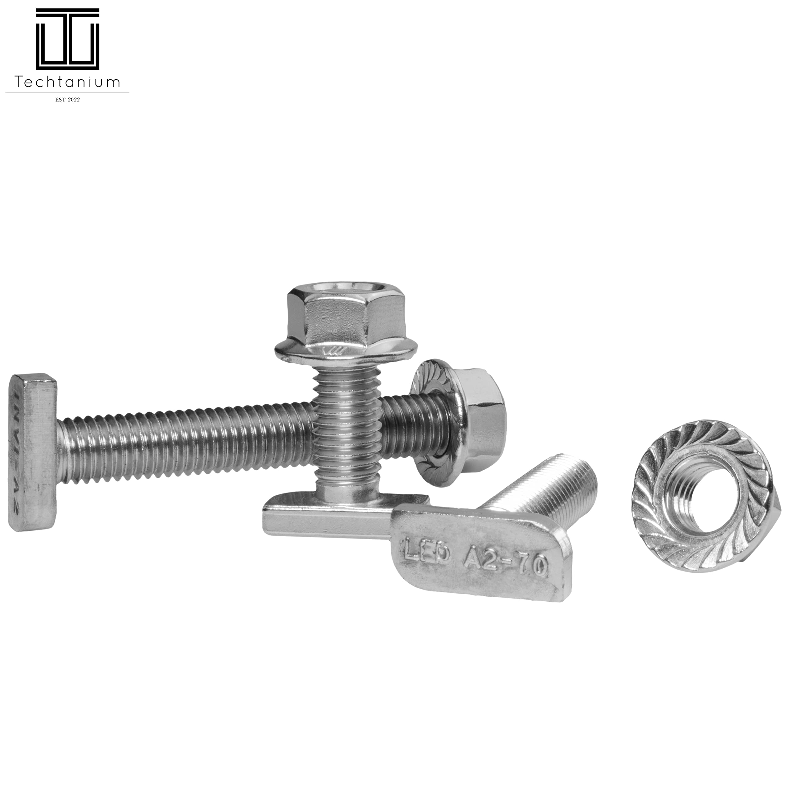 20 Stück M8 Hammerkopfschrauben aus Edelstahl A2-70 mit passenden Flanschmuttern - rostfrei und extrem stabil.