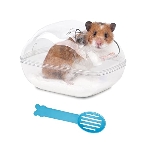 Wie süß ist denn diese Hamster-Badebox? Dein kleiner Nager wird verrückt nach diesem Sandbad sein! Aus Holz gefertigt und mit transparenten Wänden, damit du deinem Liebling beim Buddeln und Sandbaden zusehen kannst. Maße: 20x20x20 cm - perfekt für die meisten Käfige. Das khakifarbene Design fügt sich super in jede Einrichtung ein. Dein Hamster kann hier nicht nur baden, sondern die Box auch als gemütliches Versteck oder sogar als Toilette nutzen. Ganz schön multifunktional! Die Reinigung ist ein Kinderspiel - einfach den Sand austauschen und fertig. Besonders für schüchterne Hamster ist das toll: Sie haben eine geschützte Ecke, in der sie sich sicher fühlen. Auch für andere kleine Nager wie Chinchillas geeignet. So bleibt dein Tierchen sauber, beschäftigt und glücklich. Einfach mit Badesand befüllen, ins Gehege stellen und zuschauen, wie der Spaß beginnt! Das Holz ist robust und hält auch bei lebhaften Tieren gut stand. Ein Muss für jeden verantwortungsvollen Nagetierbesitzer!