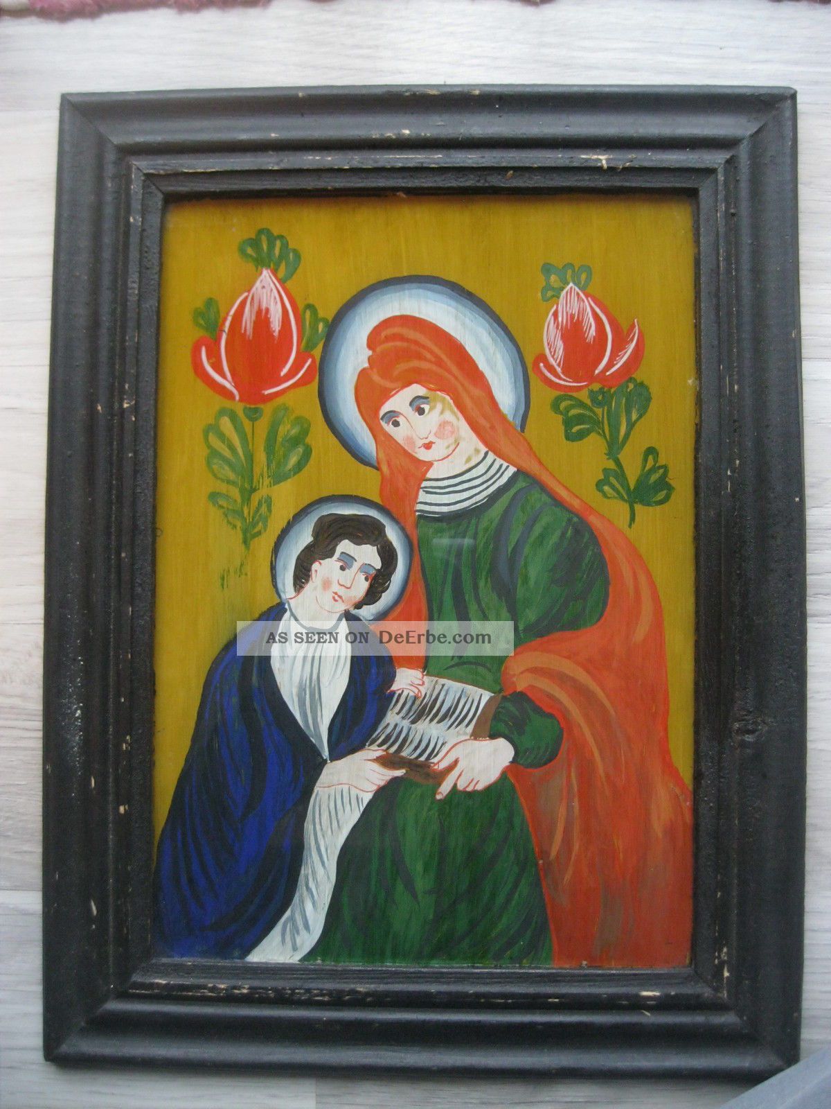 Ein wahres Kunstwerk! Dieses handbemalte Hinterglasbild der Hl. Antonia N ist ein besonderer Schatz. Der Hintergrund besteht aus echtem 24-Karat-Blattgold - das funkelt wunderschön! Im braun gebeizten Holzrahmen (ca. 12,5x16cm) kommt das Bild perfekt zur Geltung. Auf der Rückseite findest du die Legende des Heiligen - total interessant! Durch die spezielle Hinterglasmalerei wirkt das Bild je nach Betrachtungswinkel lebendig. Einfach zu reinigen - einfach das Glas abwischen. Perfekt als Geschenk für Taufe, Kommunion, Firmung, Hochzeit oder Namenstag. Ein persönliches und wertvolles Geschenk für besondere Anlässe. Über 650 verschiedene Motive erhältlich - such dir deinen Lieblingsheiligen aus!