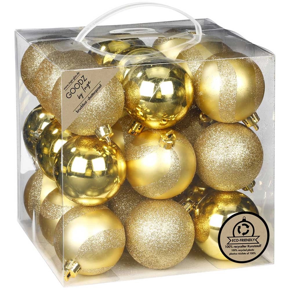 • 16-teiliges Weihnachtskugel-Set Aus PET - Handbemalte Ornamente In Gold Für Tannenbaum & Deko