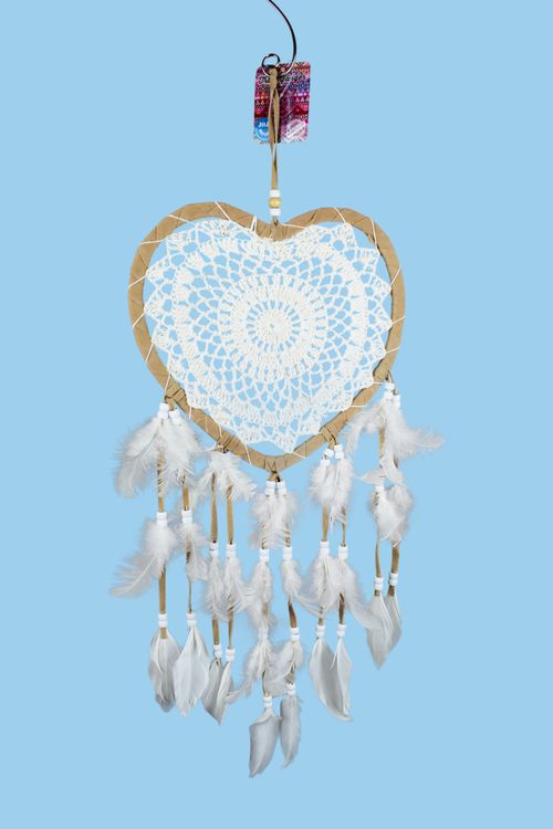 Dieser traumhafte Traumfänger in Herzform ist einfach magisch! In blau-silber mit Spiegel, Perlen und bunten Federn. Handgefertigt auf Bali von den berühmten Kunsthandwerkern - man spürt die Liebe zum Detail. Länge ca. 50cm, der Herzring hat 16cm Durchmesser. Perfekt fürs Kinderzimmer, Schlafzimmer oder als besonderes Geschenk. Der Spiegel fängt das Licht ein und die Federn tanzen im Luftzug. Ein richtiger Hingucker der nicht nur schön aussieht, sondern auch böse Träume einfangen soll. Hängt ihn übers Bett und träumt was Schönes!