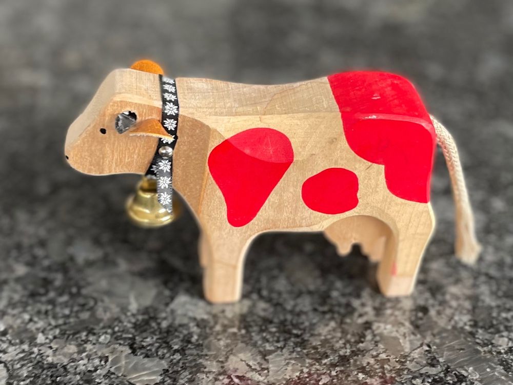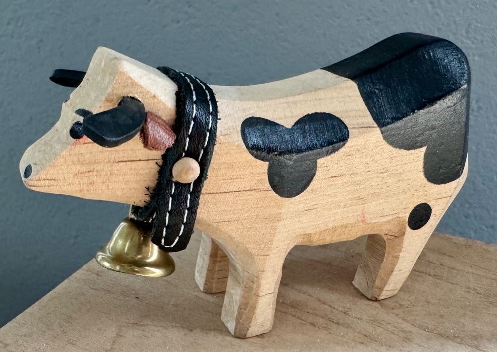 Diese niedliche Holzkuh bringt Landhaus-Charme in dein Zuhause! Handbemalt und aus hochwertigem Holz gefertigt, ist die 17,5x14x5 cm große Figur ein echter Hingucker. Perfekt fürs Wohnzimmer, Kinderzimmer oder als Garten-Deko - sie verleiht jedem Raum sofort gemütliche Atmosphäre. Die realistische Gestaltung und die liebevollen Details machen diese Kuh zu einem besonderen Schmuckstück. Ob auf dem Balkon, im Blumenbeet oder im Regal - dieses Unikat sorgt überall für gute Laune und ländliches Flair. Ein Muss für alle Kuh-Liebhaber und Landhaus-Fans!