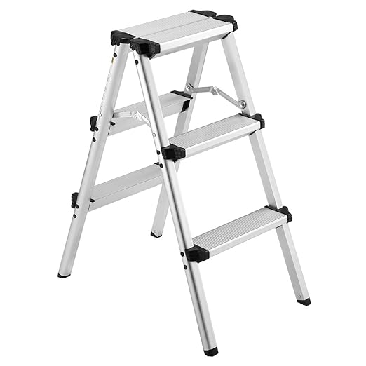 Sicherheit geht vor! Diese 3-Stufen-Trittleiter mit Handlauf gibt dir den nötigen Halt bei allen Arbeiten in der Höhe. Mit rutschfesten Gummimatten auf den extra großen Stufen (38x26 cm) und rutschfesten Füßen - da passiert nichts! Aus robustem Stahl gefertigt und bis 150 kg belastbar. Offene Größe: 47x66x130,5 cm, zusammengeklappt nur 47x8,5x143 cm - platzsparend für die Aufbewahrung. Der ergonomische Handlauf gibt zusätzliche Sicherheit und Balance. Perfekt für Haushalt, Küche, Garage, zum Fensterputzen, Dekorieren, Malern oder Gartenarbeiten. Leicht genug zum Tragen (6,4 kg), aber stabil genug für den täglichen Einsatz. Einfach aufklappen, raufsteigen und die Arbeit erledigen - sicher und komfortabel. Ein Muss für jeden Haushalt!