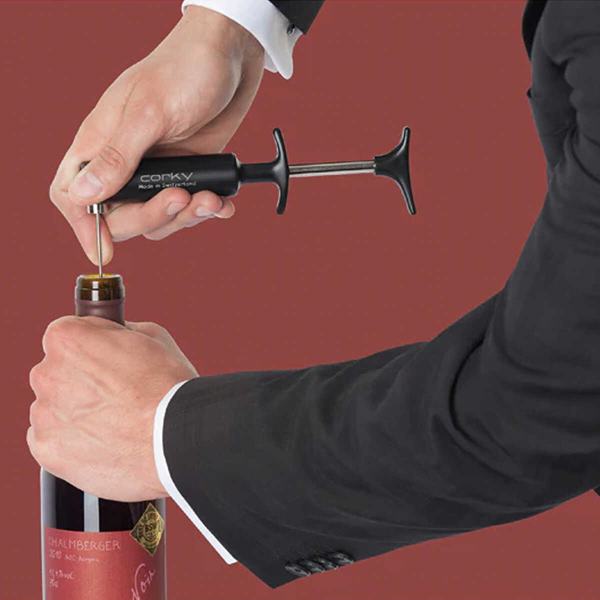Dieser geniale Cork Lift macht das Öffnen von Weinflaschen zum Kinderspiel - ganz ohne Kraftaufwand! Einfach die Hohlnadel durch den Korken stechen und durch Pumpbewegungen Druck aufbauen - schon hebt sich der Korken sanft und ohne zu brechen aus der Flasche. Die Antihaftbeschichtung PTFE sorgt dafür, dass die Nadel sich leicht einstechen und wieder herausziehen lässt. Getestet und für gut befunden vom 'Einfach Hausgemacht' Magazin mit 5 von 5 Punkten! Hergestellt in Solingen, der Stadt der besten Klingen, garantiert dieser Korkenzieher deutsche Qualität und Langlebigkeit. Perfekt für Naturkorken - ob teurer Bordeaux oder einfacher Landwein, mit dem Cork Lift geht jeder Korken mühelos auf. Ideal für Menschen mit Handgelenksproblemen oder einfach für alle, die sich das lästige Herumgezerre an der Weinflasche ersparen wollen. Ein echter Game-Changer für jeden Weinliebhaber!