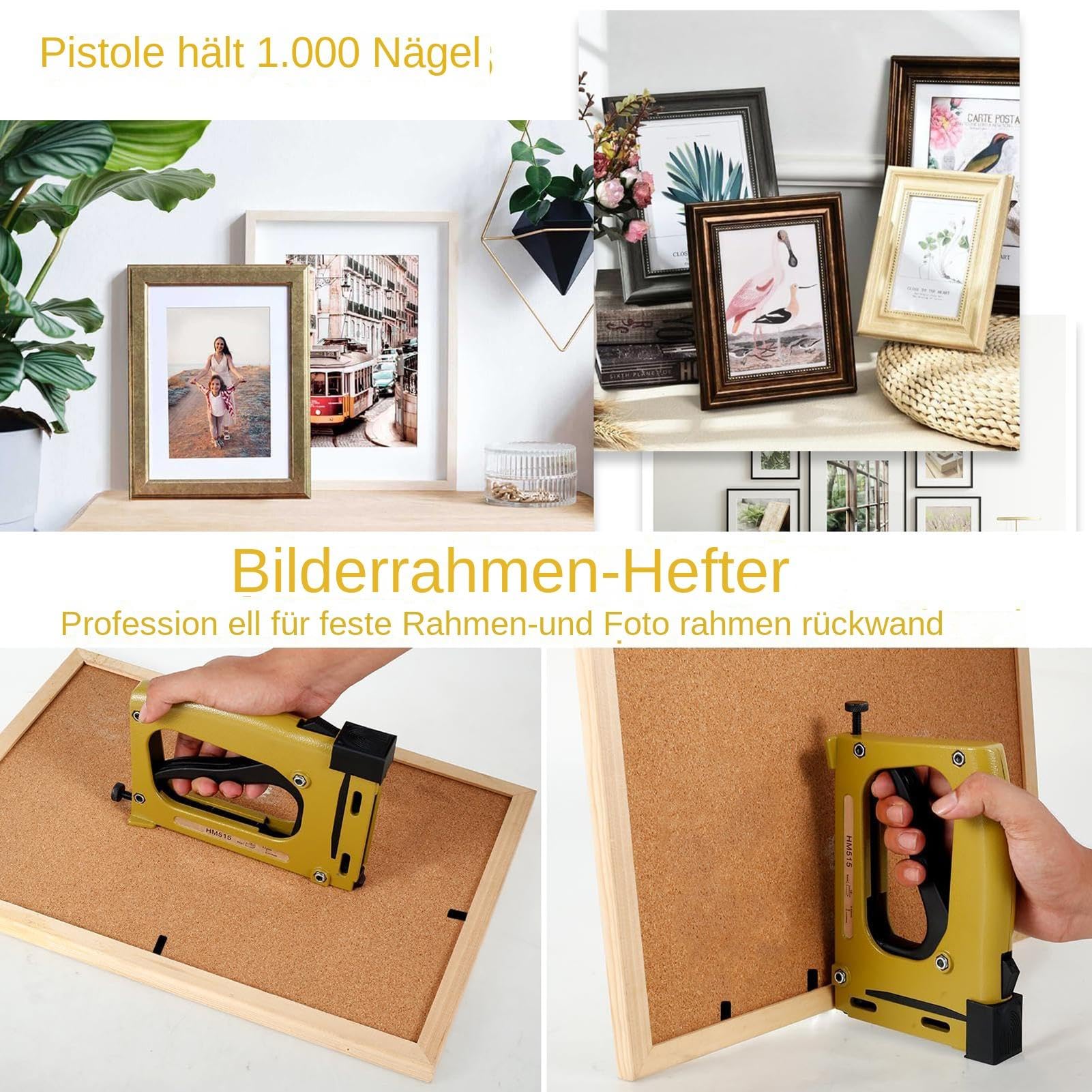 Der Rahmenpunkttreiber setzt die Punkte millimetergenau - so verrutscht nichts und dein Bild bleibt perfekt an Ort und Stelle. Viel besser als diese wackeligen Metallklammern!