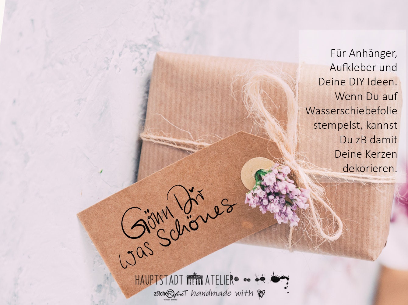 Oh, wie süß! Dieser Geburtstags-Stempel mit handgeschriebener Schrift ist einfach perfekt für alle, die gerne basteln! Der Stempel ist handgefertigt im Berliner Atelier und kommt auf lackiertem Holz mit praktischer Griffmulde - liegt super in der Hand! Mit den Maßen 39x19 mm ist er genau richtig für Karten, Geschenkanhänger oder Briefumschläge. Du kannst ihn mit normalen Stempelkissen oder auch mit Acrylfarbe verwenden - ganz wie du magst! Ob auf Papier, Stoff oder sogar auf Keksen - der Stempel macht überall eine gute Figur! In der süßen Verpackung eignet er sich auch super als Geschenk für kreative Freunde. Und das Beste: Jeder Stempel wird mit einem Merkblatt geliefert, auf dem viele Tipps und Ideen stehen! So fällt dir das Stempeln sicher leicht! Egal ob für Scrapbooking, Karten basteln oder einfach nur zum Verzieren - mit diesem Stempel machst du immer eine gute Figur! Einfach ein schönes Accessoire für alle, die es persönlich und individuell mögen!
