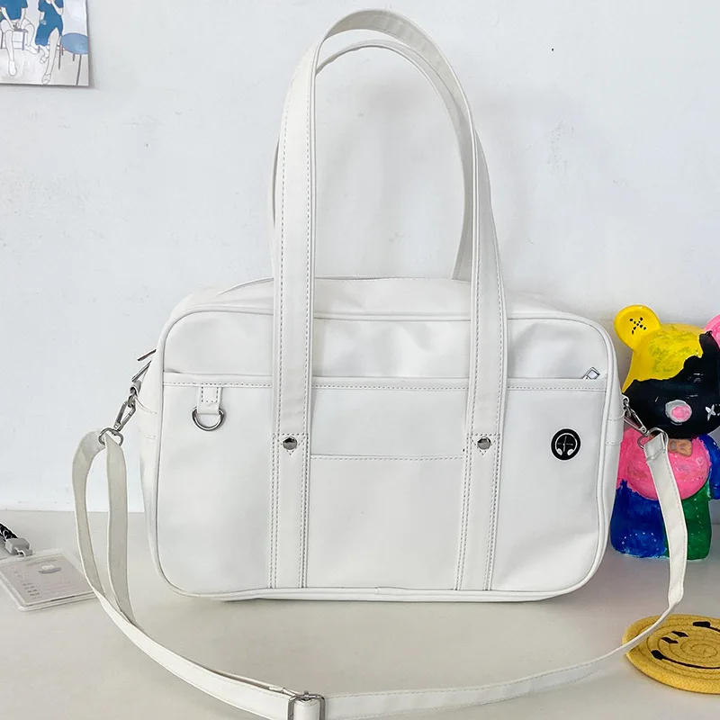 Möchtest du einen richtig coolen, japanischen Style? Diese HICARRY Handtasche ist total im Trend! Im typischen JK-School-Look mit süßem Plüschtier-Anhängerring und praktischem Kopfhörer-Durchführloch für deine kabellosen Kopfhörer. Maße: 28x18x9 cm - perfekt für deine täglichen Essentials. Aus robustem PU-Leder, das wasserabweisend ist und sich super leicht reinigen lässt. Der sichere Hauptreißverschluss schützt deine Wertsachen, während die 2 Außentaschen schnellen Zugriff auf Handy oder Schlüssel ermöglichen. Innen findest du ein extra Fach für deinen Laptop (bis 14 Zoll). Ob für die Schule, Uni oder als stylische Alltagstasche - mit diesem Vintage-Teil machst du immer eine gute Figur! Der Tragekomfort ist durch den verstellbaren Schulterriemen optimal. Und das Beste: Die Tasche sieht nicht nur toll aus, sondern ist auch mega praktisch. Perfekt für alle, die es individuell und ein bisschen anders mögen!