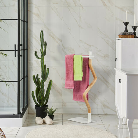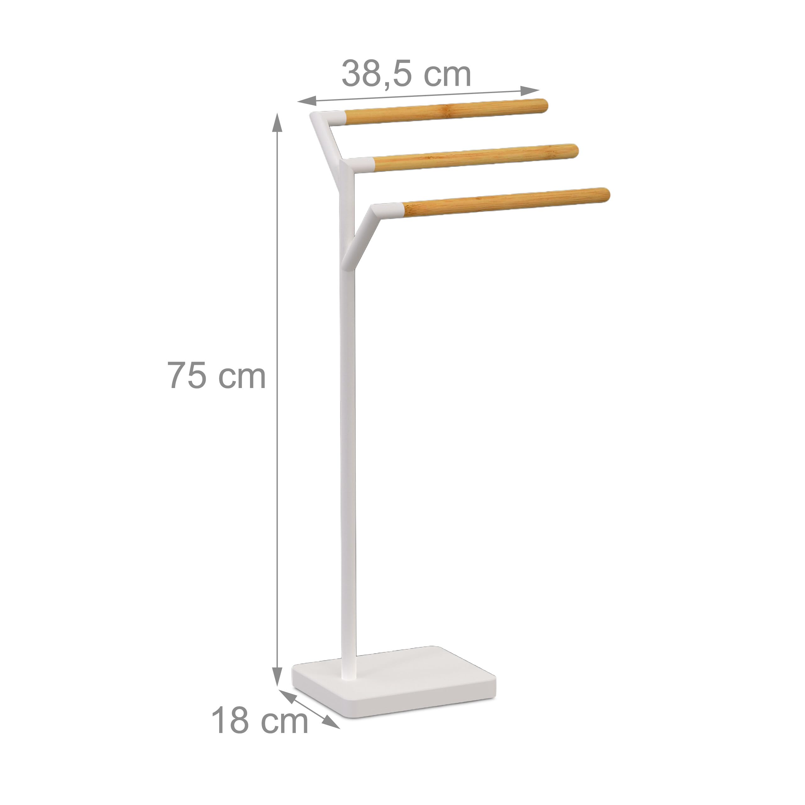 Endlich Ordnung im Bad! Dieser freistehende Handtuchständer von Relaxdays ist der absolute Game-Changer für dein Badezimmer. Mit zwei schwenkbaren Armen hast du genug Platz für Handtücher, Duschtücher und sogar Bademäntel. Das Tolle: Du musst nicht bohren! Einfach hinstellen und fertig - der stabile Standfuß hält alles sicher an Ort und Stelle. In mattem Weiß sieht er super edel aus und passt in jedes Badezimmer. Aus beschichtetem Eisen, das nicht rostet und super leicht zu reinigen ist. Mit 78,5cm Höhe und 38,5cm Breite findet er auch in kleineren Bädern Platz. Perfekt zum Trocknen und Lüften der Handtücher - und sieht dabei noch richtig gut aus! Einfach praktisch und stylisch zugleich!