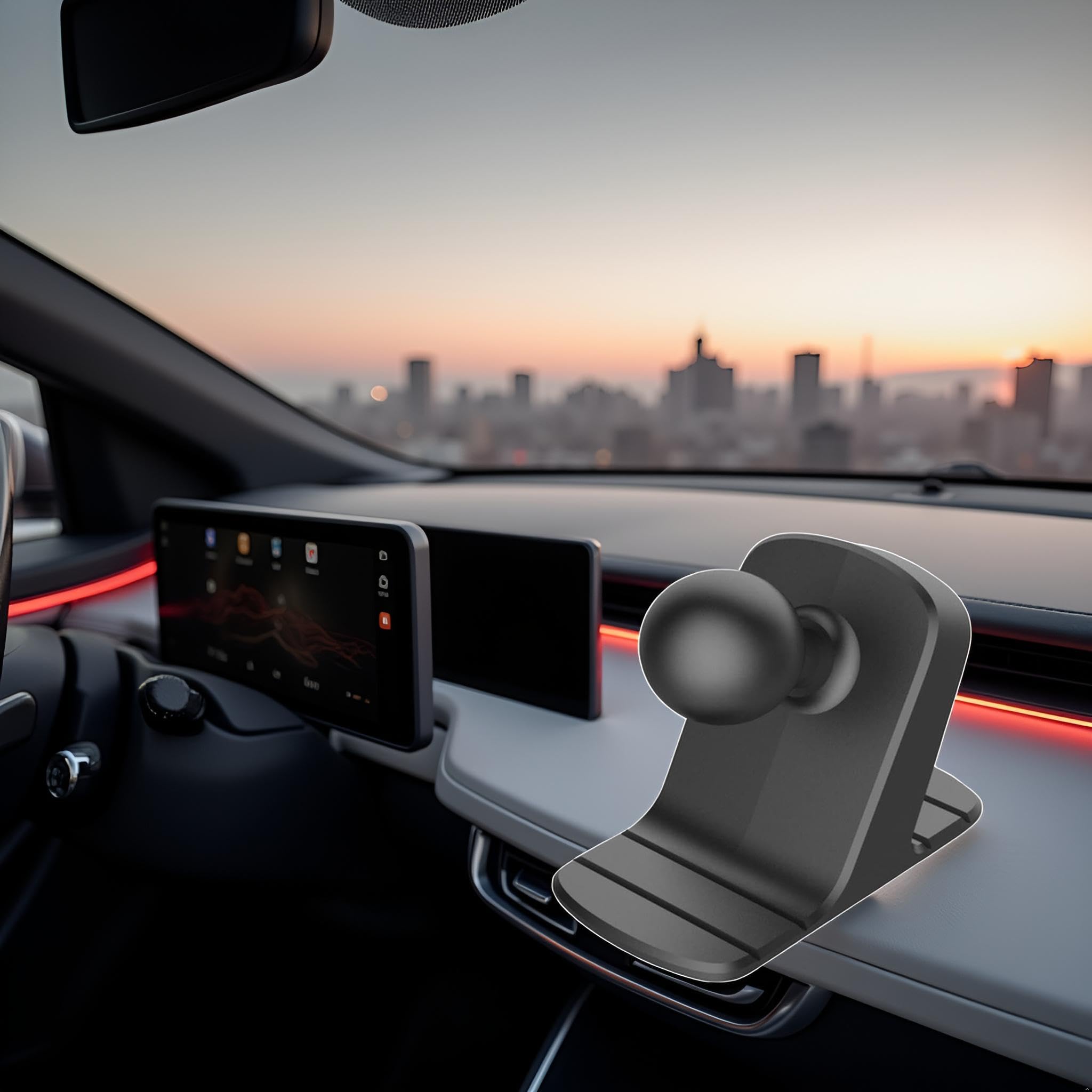 Mann, diese Handyhalterung ist ja mal richtig clever gemacht! Mit dem 17mm Kugelkopf kannst du dein Handy in echt jedem Winkel positionieren - drehen und neigen wie du willst. Das beste: Sie passt sowohl aufs Armaturenbrett als auch in den Lüftungsschlitz, also flexibel je nach Auto. Der rutschfeste Boden hält bombenfest und dein Handzittert nicht mehr während der Fahrt. Universal passend für so gut wie alle Smartphones, ob groß oder klein. Aus robustem schwarzem Material das nicht so schnell kaputt geht. Einfach reinstecken, Handy einklicken und schon hast du deine Navi-App perfekt im Blick. Sicherer geht's kaum!