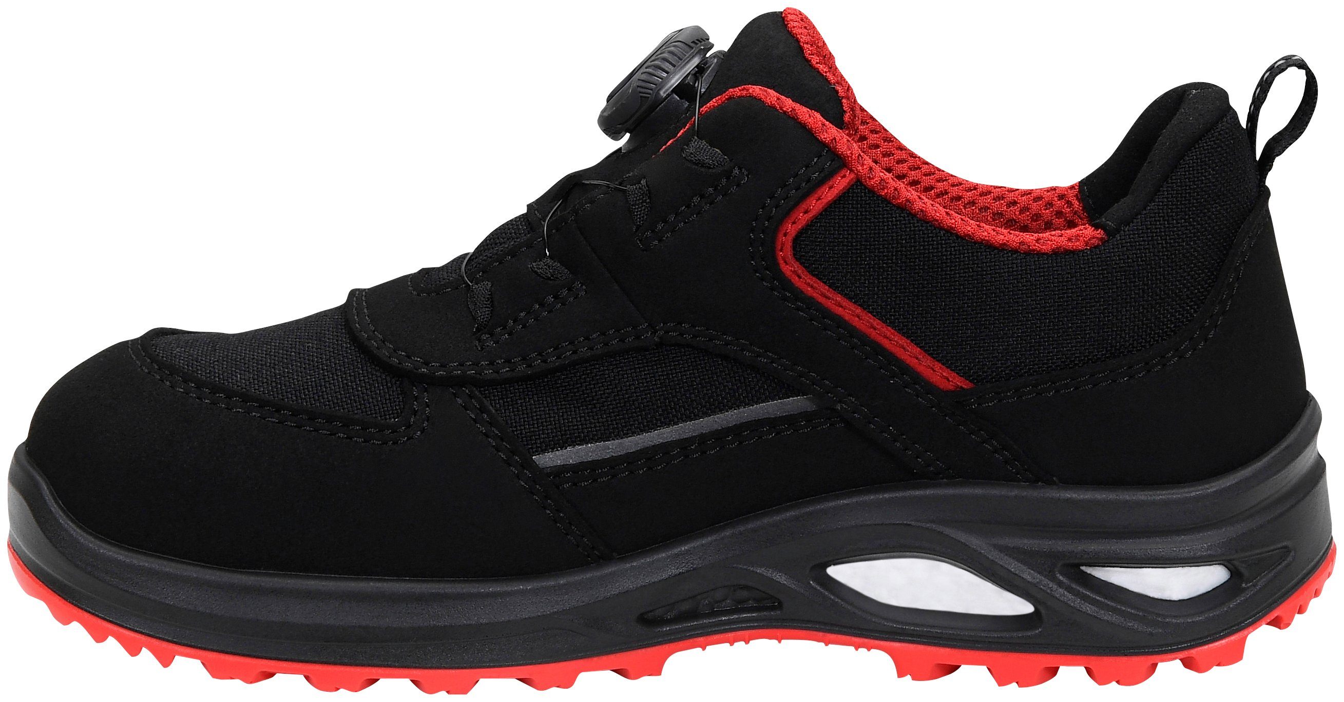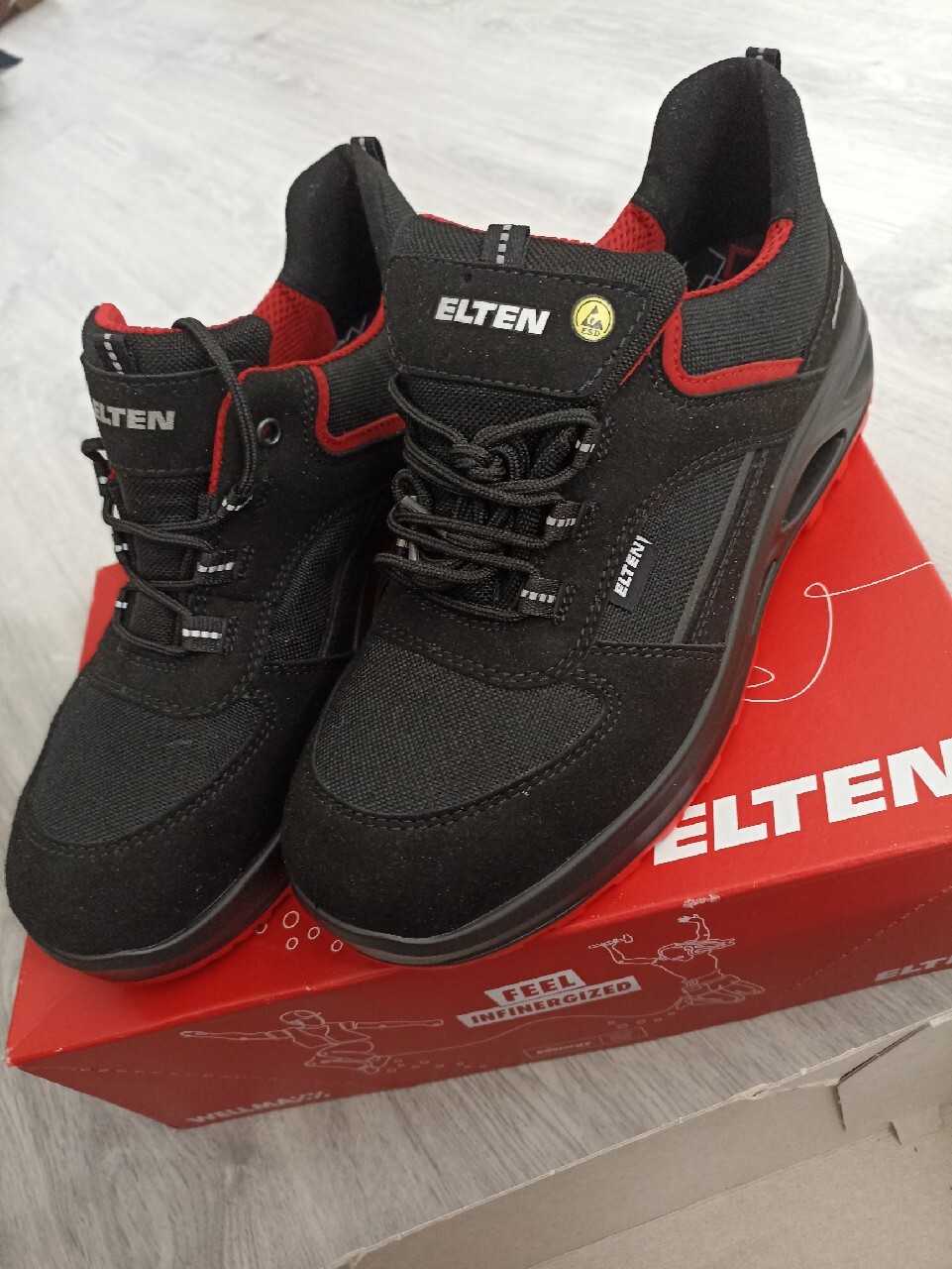 Für alle Frauen, die im Beruf auf sichere und bequeme Schuhe angewiesen sind! Diese ELTEN Hannah Sicherheitsschuhe sind einfach genial. Mit dem praktischen BOA-Schnellsystem ziehst du sie blitzschnell an - kein lästiges Binden mehr! Die Stahlkappe schützt deine Zehen perfekt und die S3S-Ausstattung bietet volle Sicherheit. Besonders praktisch: ESD-fähig für elektrostatische Entladung und rutschfeste Sohle. Das atmungsaktive Textilmaterial sorgt für ein angenehmes Klima, selbst bei langen Arbeitstagen. Die WELLMAXX-Dämpfung federt jeden Schritt super weich ab. In schmaler Damen-Passform und der trendy black-red Farbkombination sehen sie richtig gut aus. Hergestellt in Deutschland - da weißt du, was du kriegst! Perfekt für Handwerk, Industrie oder Handwerk - wo immer sichere Schuhe gefordert sind. Einfach anziehen, BOA-System zudrehen und los geht's!