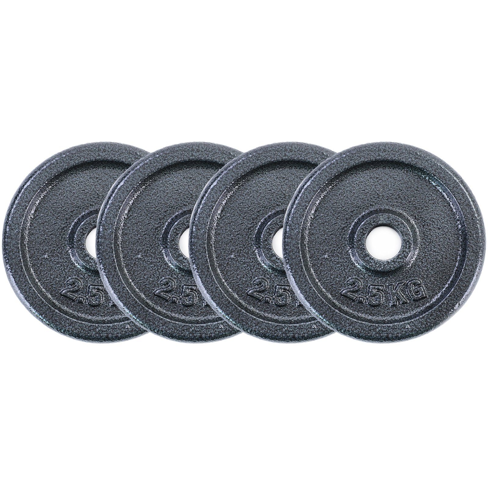 Boah, dieses Hantelscheiben-Set von RAMROXX ist ja mal perfekt fürs Home-Workout! Du kriegst zwei stabile 2,5kg Scheiben aus robustem Gusseisen - zusammen also 5kg Trainingsgewicht. Mit 27mm Lochdurchmesser passen sie perfekt auf Standard-Hantelstangen bis 25mm. Das besondere Feature: Die Hammerschlag-Versiegelung sieht nicht nur cool aus, sondern schützt die Scheiben auch vor Rost und Abnutzung. Ob für Zuhause oder im Fitnessstudio - diese Gewichte halten was sie versprechen. Mit 17cm Durchmesser und 2,2cm Stärke liegen sie super in der Hand und sind auch für Anfänger gut zu handhaben. Perfekt für Krafttraining, Muskelaufbau oder allgemeine Fitness-Übungen. Du kannst sie super mit anderen Scheiben kombinieren und so dein Trainingsgewicht nach Belieben anpassen. Die Verarbeitung ist professionell - keine scharfen Kanten, kein Verkanten beim Aufstecken. Ideal für Kurzhantel-Übungen, aber auch für Langhanteln geeignet. Ob du gerade mit dem Krafttraining anfängst oder deine Gewichte erweitern willst - mit diesem Set machst du nichts verkehrt. Die Scheiben sind langlebig, stabil und sehen dabei noch richtig professionell aus. Einfach auf die Stange stecken, festziehen und los trainieren - mehr Muskeln, mehr Kraft, mehr Fitness!