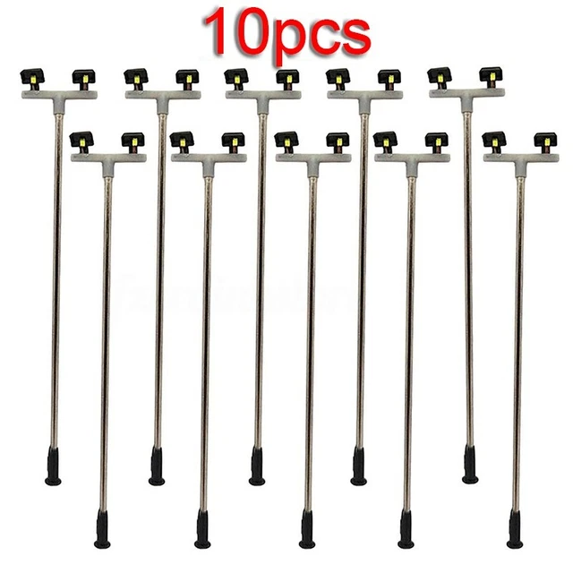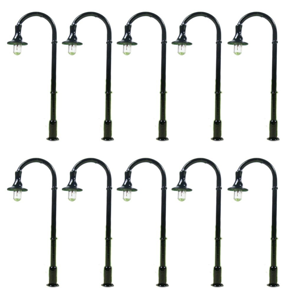 Bring deine Modelleisenbahn-Landschaft zum Leuchten! Dieses Set mit 10 LED-Straßenlaternen im HO-Maßstab 1:100 verwandelt deine Anlage in eine lebendige Miniaturwelt. Die Laternen sind zwischen 6-11 cm hoch und sehen täuschend echt aus.