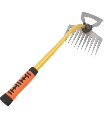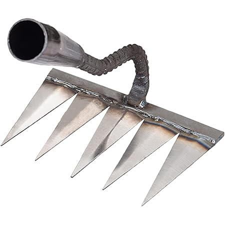 Mensch, diese Gartenharke kann was erleben! Mit fünf robusten Zinken aus Kohlenstoffstahl geht sie durch jeden Boden - egal wie fest er ist. Zum Unkraut jäten, Boden lockern oder Pflanzen setzen einfach ideal! Die Zinken sind dreifach verschweißt und halten auch bei schwerer Arbeit bombenfest. Mit 600g Gewicht liegt sie gut in der Hand, aber hat trotzdem genug Power für anspruchsvolle Aufgaben. Du kannst sie solo als Handharke verwenden oder einfach einen Holzstiel anbringen - dann hast du eine lange Harke für rückenschonendes Arbeiten. Der Schmiedeprozess macht sie besonders langlebig, auch wenn die Oberfläche etwas rau wirkt. Einfach bei längerer Nichtbenutzung etwas Schutzöl drauf - dann hält sie ewig! Ob im Gemüsebeet, Blumenbeet oder für Landschaftsarbeiten - diese Harke ist dein bester Freund im Garten. Laub rechen, Erde ebnen, Unkraut entfernen - damit kriegst du alles hin! Ein super Geschenk für Gartenliebhaber oder einfach für dich selbst. Hol dir diese robuste Harke und mach deine Gartenarbeit leichter und effizienter - dein Rücken wird's dir danken!